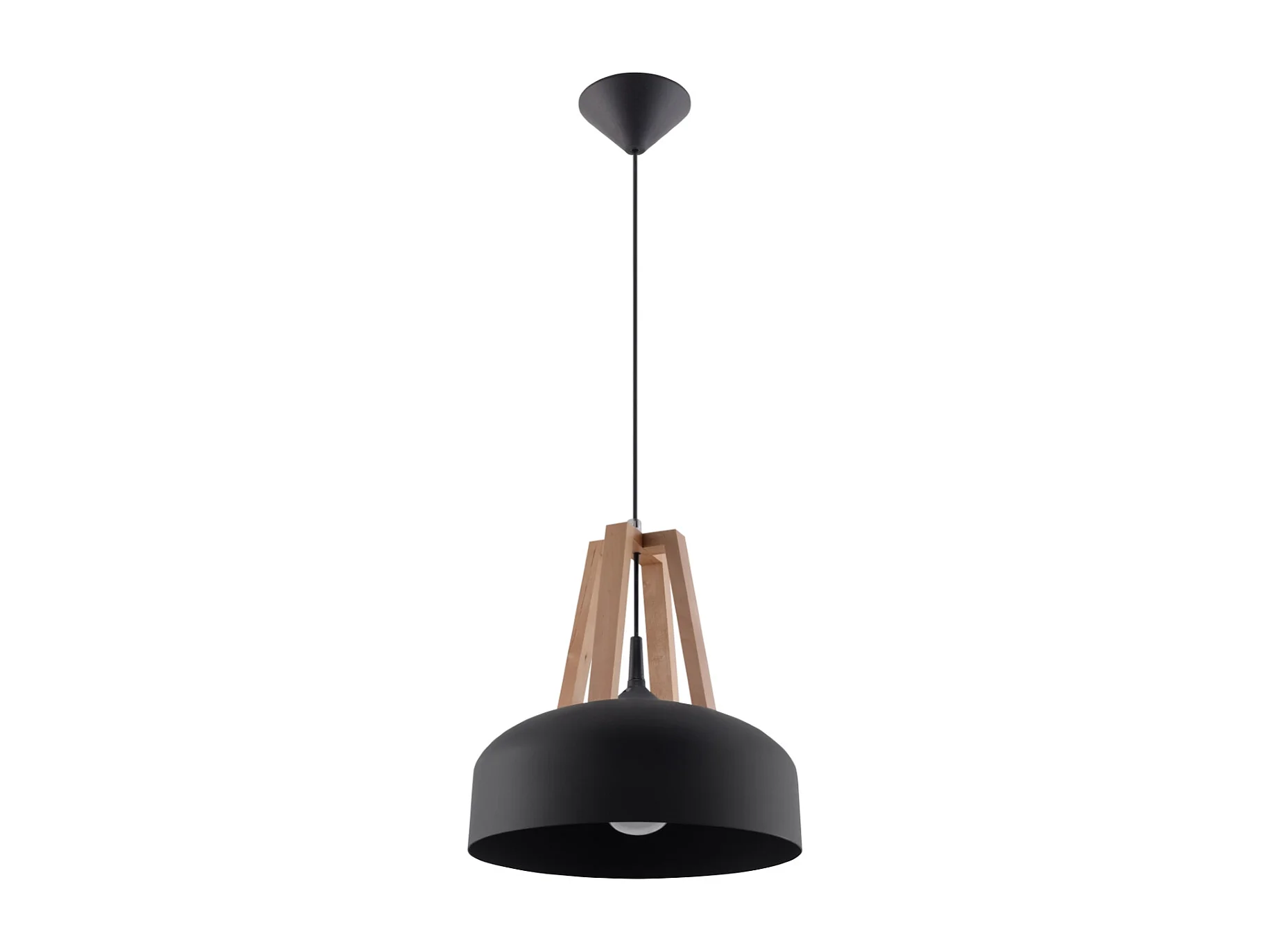 Lampes suspendues Solivo moderne en acier/bois - 1 sources lumineuses 3000K - L.30 x H.85 cm - noir/bois naturel