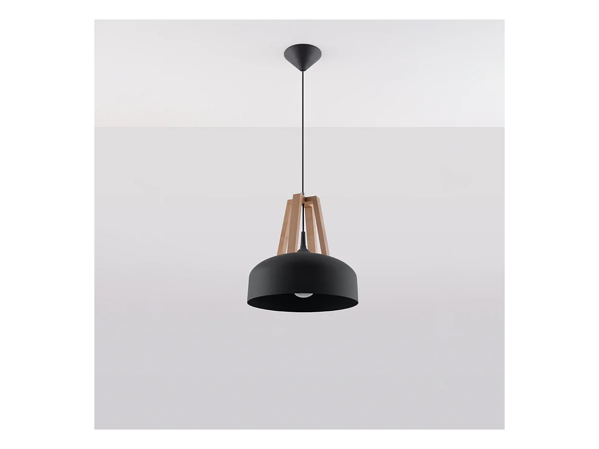 Lampes suspendues Solivo moderne en acier/bois - 1 sources lumineuses 4000K - L.30 x H.85 cm - noir/bois naturel