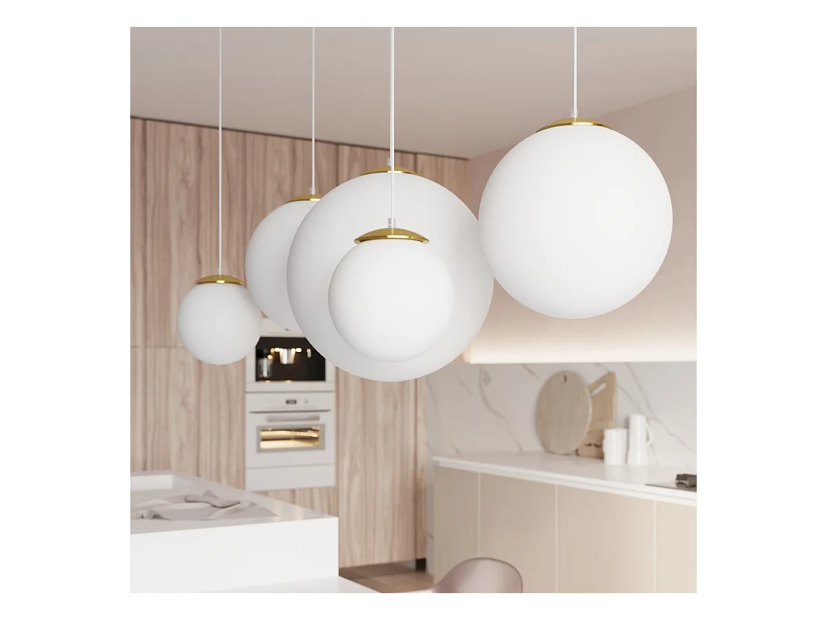 Lampes suspendues Stera minimaliste en acier/verre - 1 sources lumineuses 4000K - L.20 x H.110 cm - or blanc