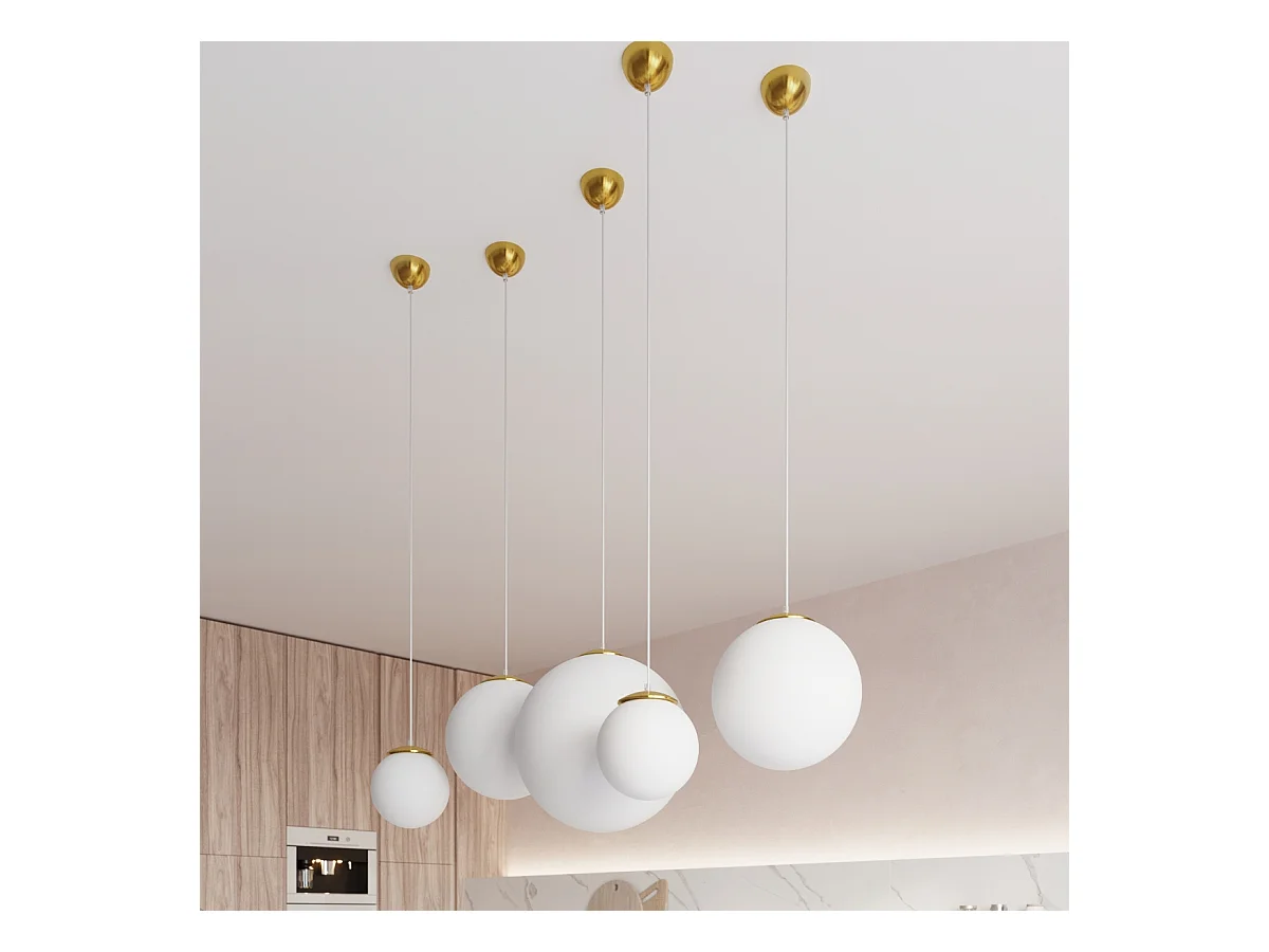 Lampes suspendues Stera minimaliste en acier/verre - 1 sources lumineuses 4000K - L.40 x H.130 cm - or blanc