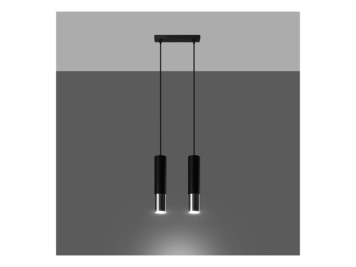 Lampes suspendues Zarpex moderne en acier - 2 sources lumineuses 4000K - L.30 x H.90 cm - noir/chromé