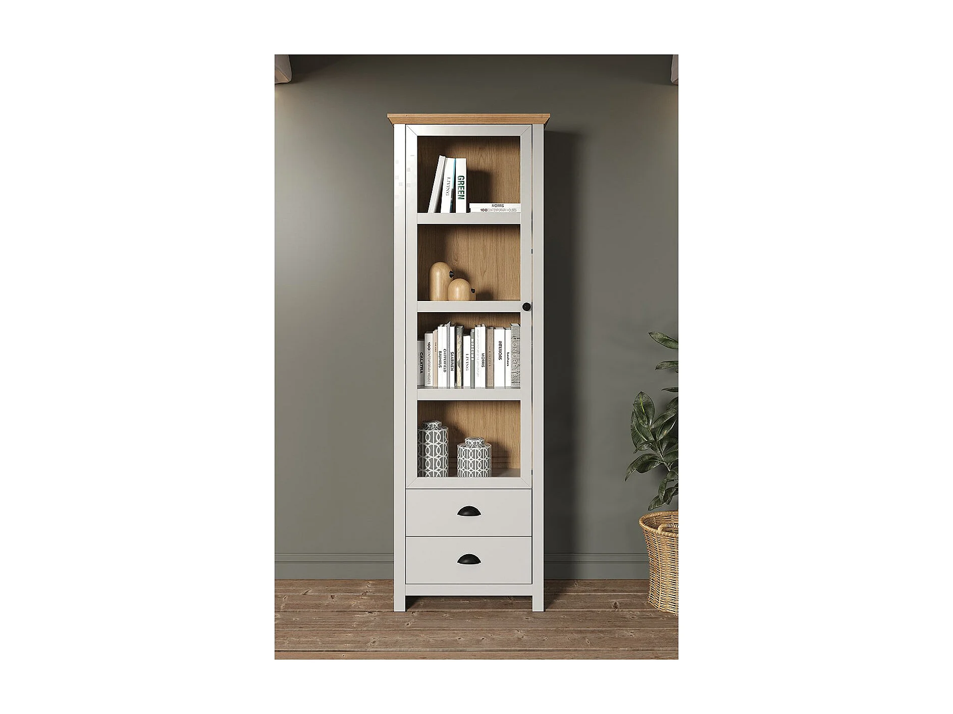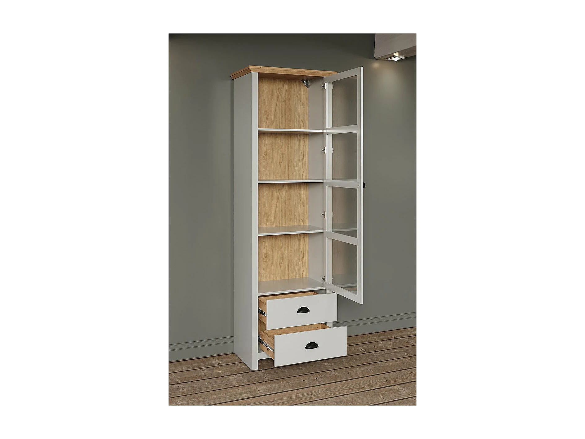 Vitrine 1 porte en verre trempé et 2 tiroirs L65 cm - LANDSIDE