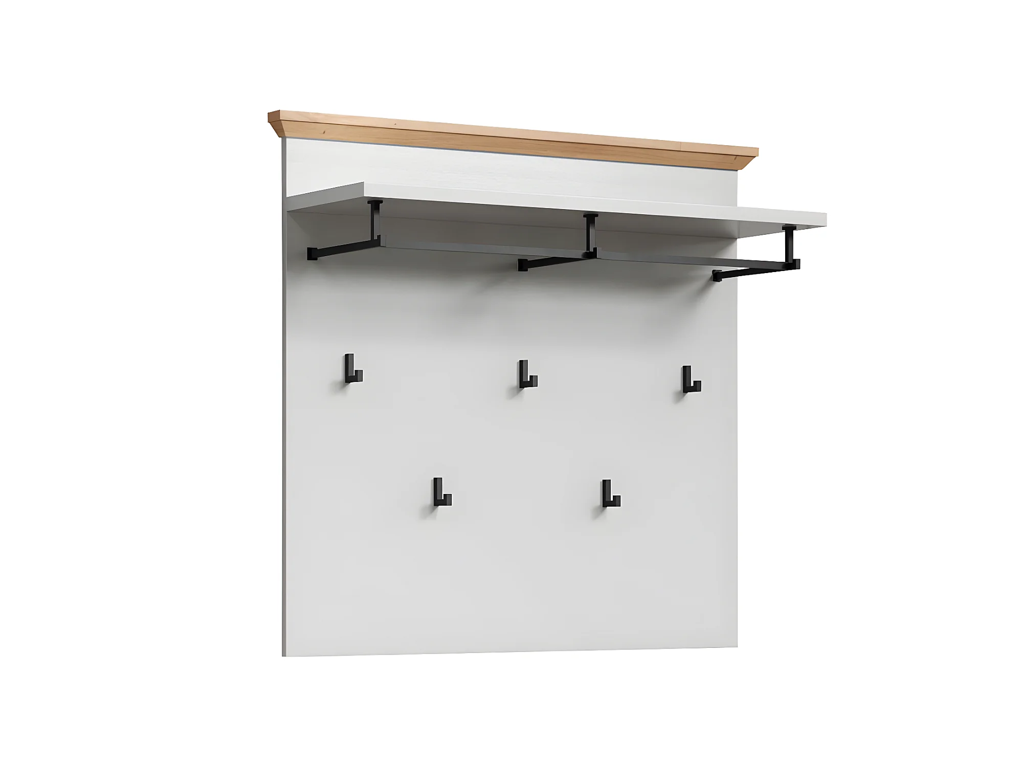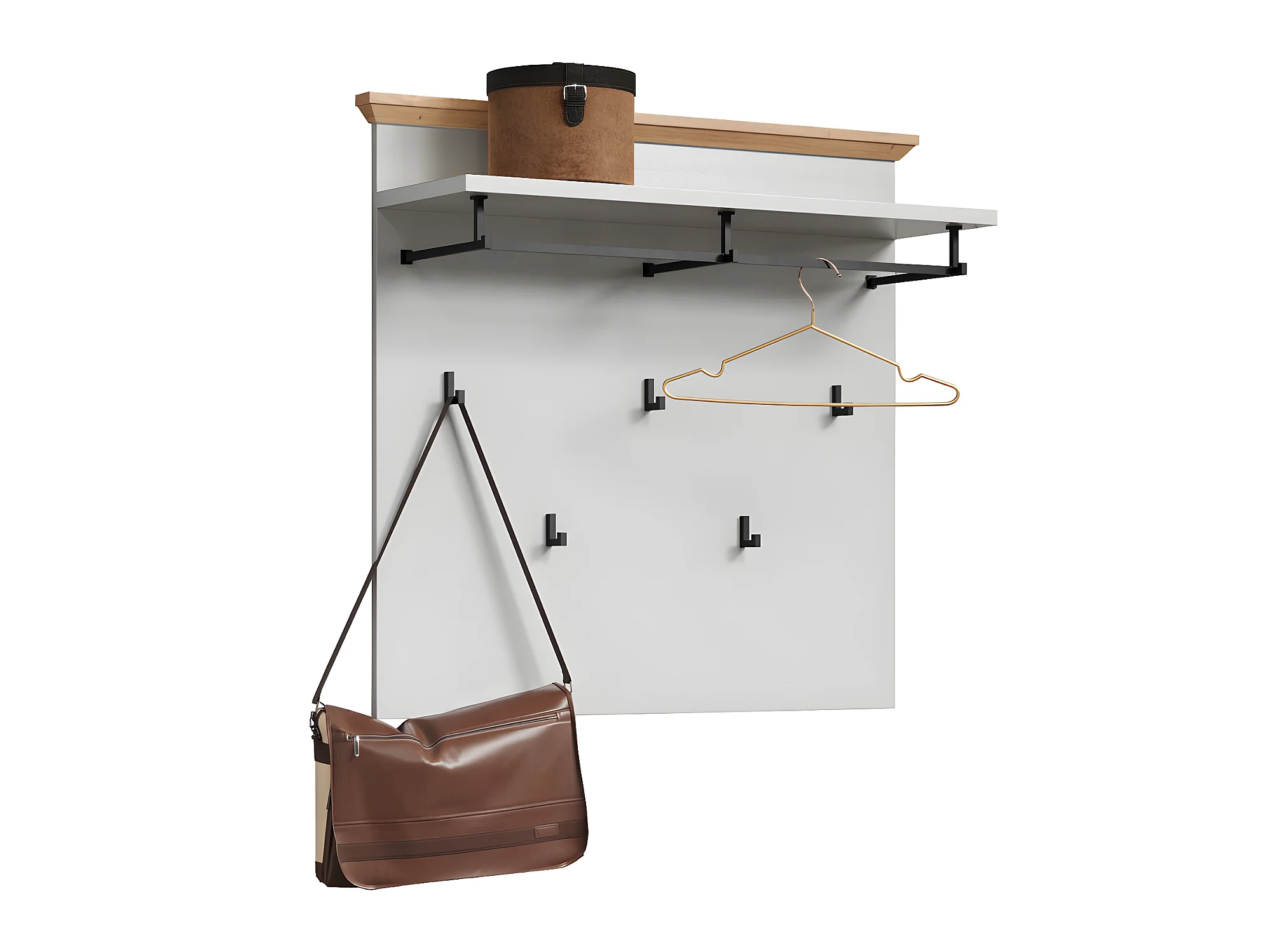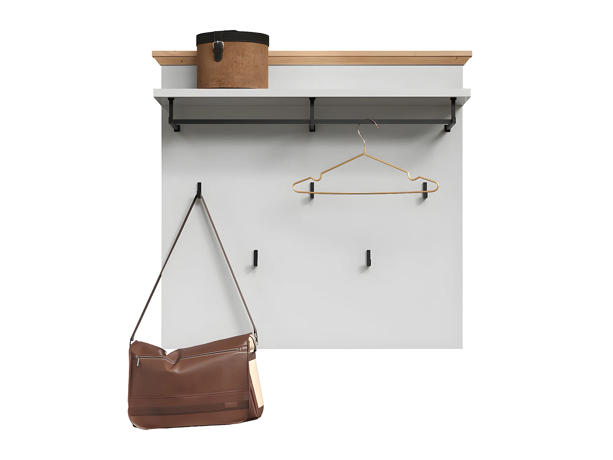 Irwin Portemanteau mural, 1 tablette de rangement, 1 tringle et 3 crochets, style gris Matera, look vieux bois.