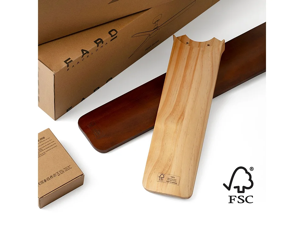 Ventilateur de plafond Faro Barcelona - Gotland L Noir/Bois - Moteur CC silencieux, sans lumière, télécommande, 6 vitesses