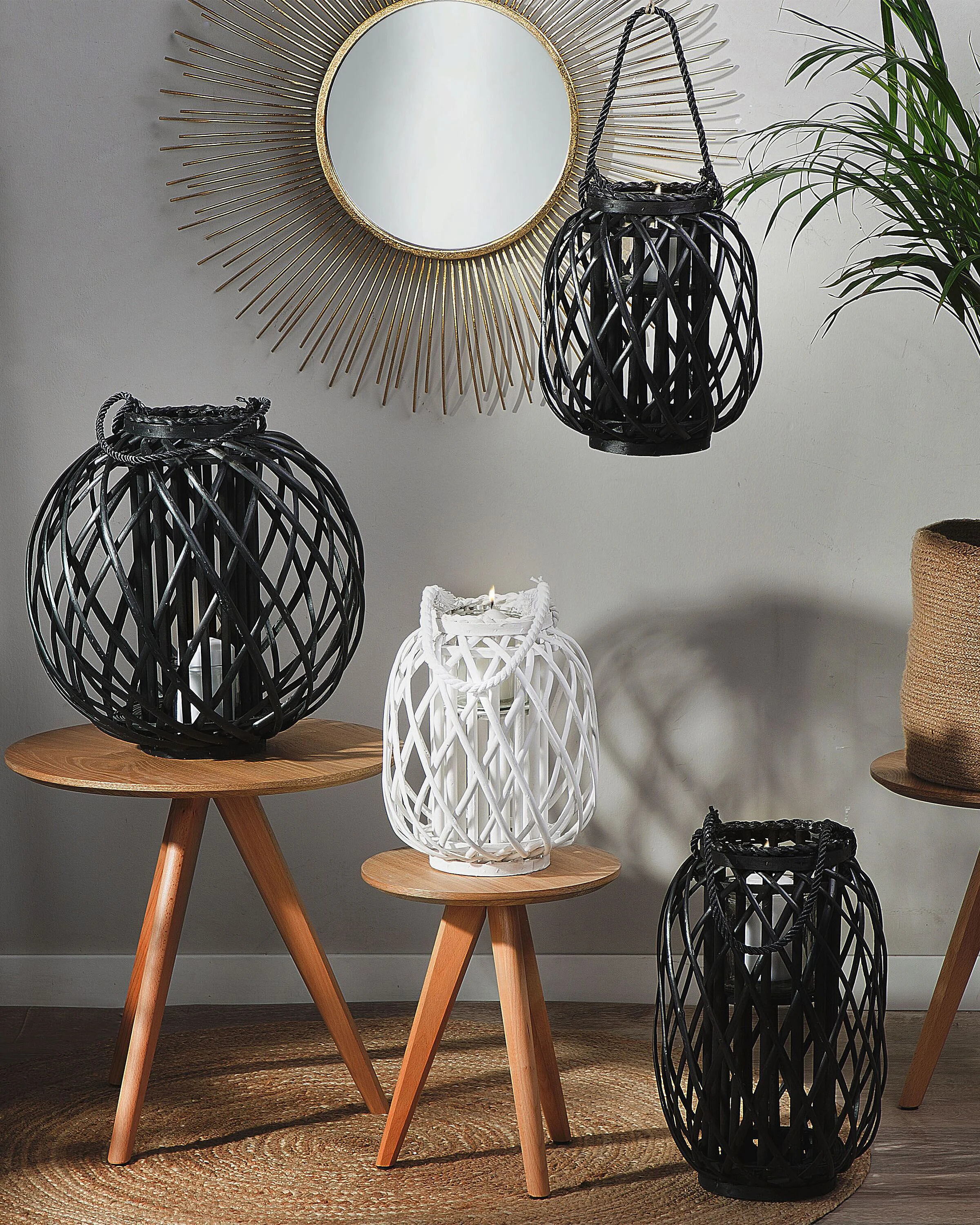 Lanterne MAURITIUS Bois de saule 30 cm Blanc