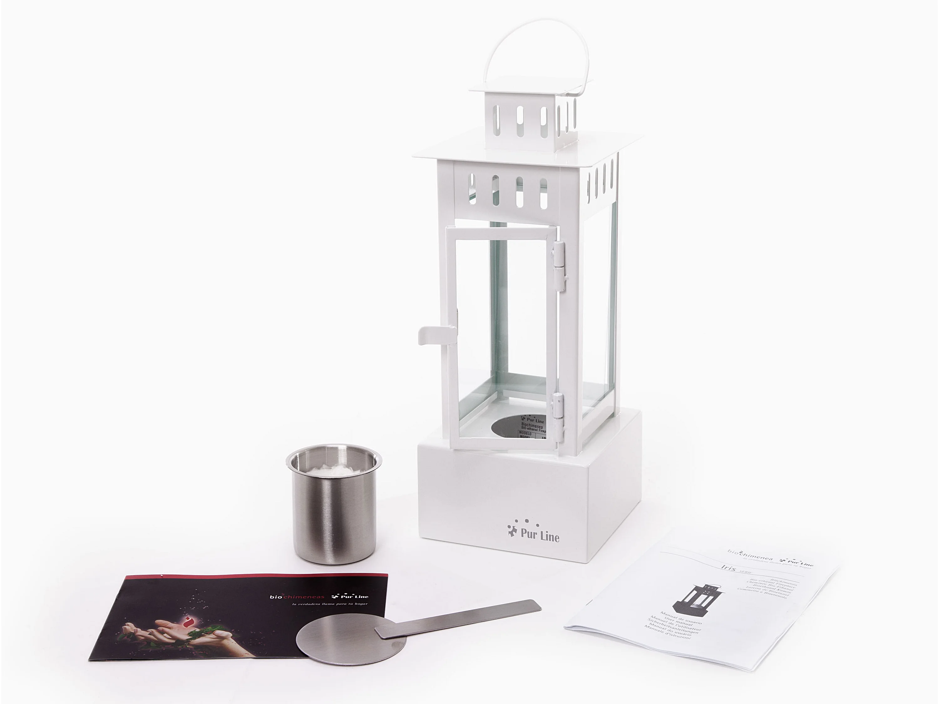 Poêle à éthanol 1,5kW design carré en acier blanc avec pieds