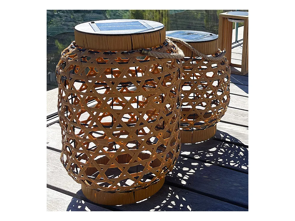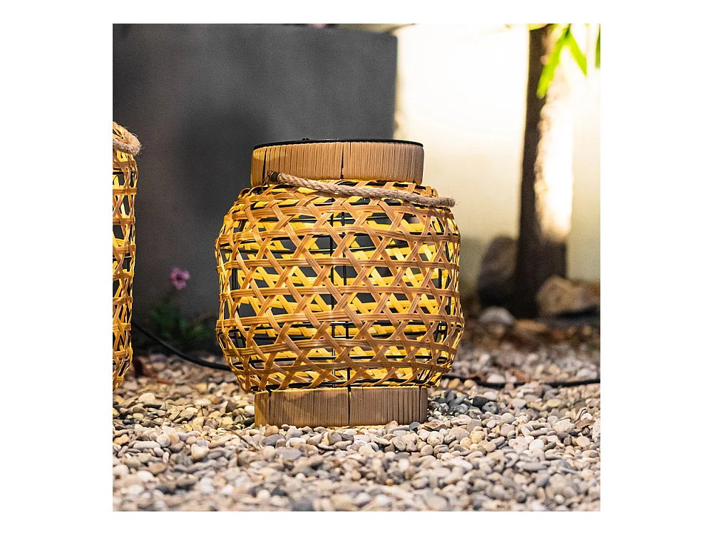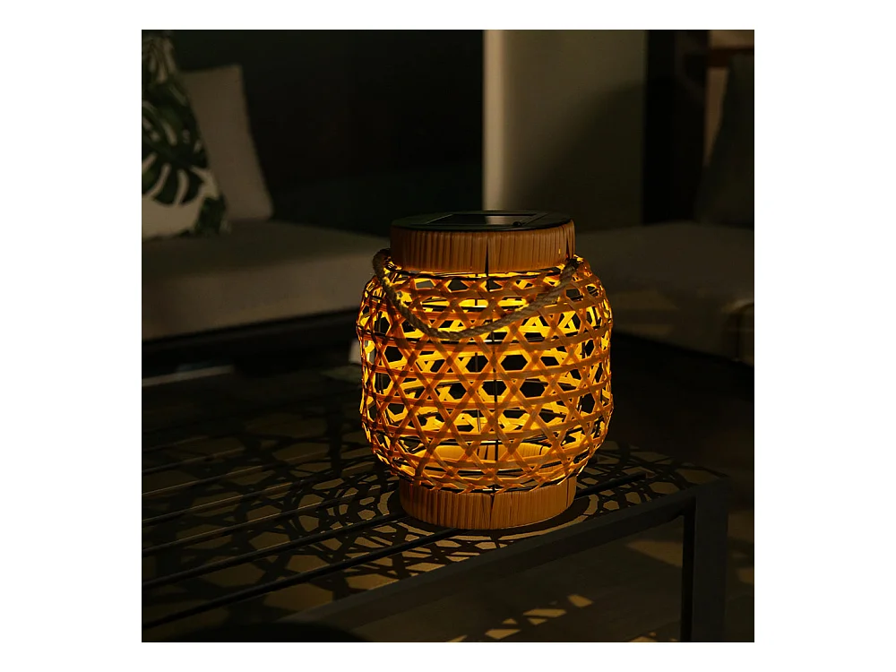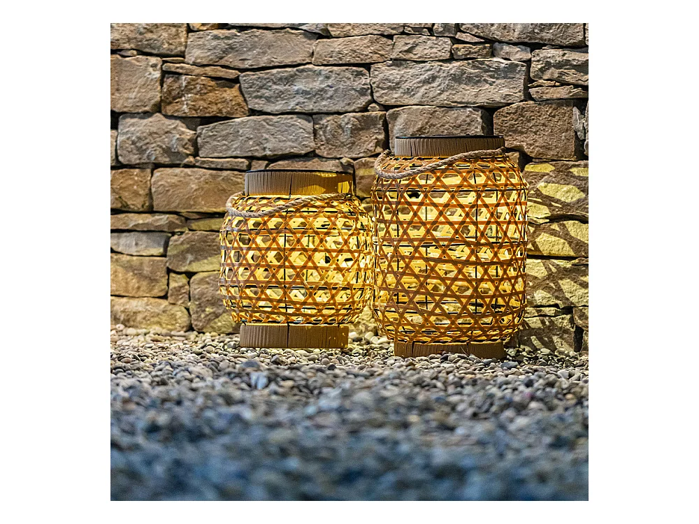 Lanterne solaire décorative CAPRI Beige Poly rotin H32cm