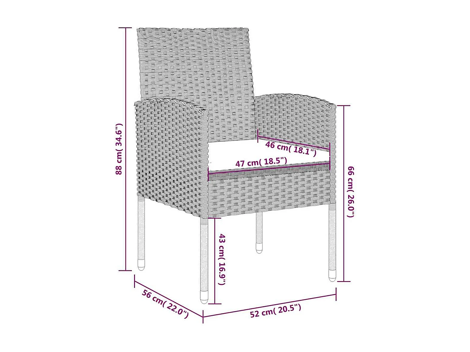 Rinaldo Ensemble à manger de jardin coussins 5pcs Noir Résine tressée