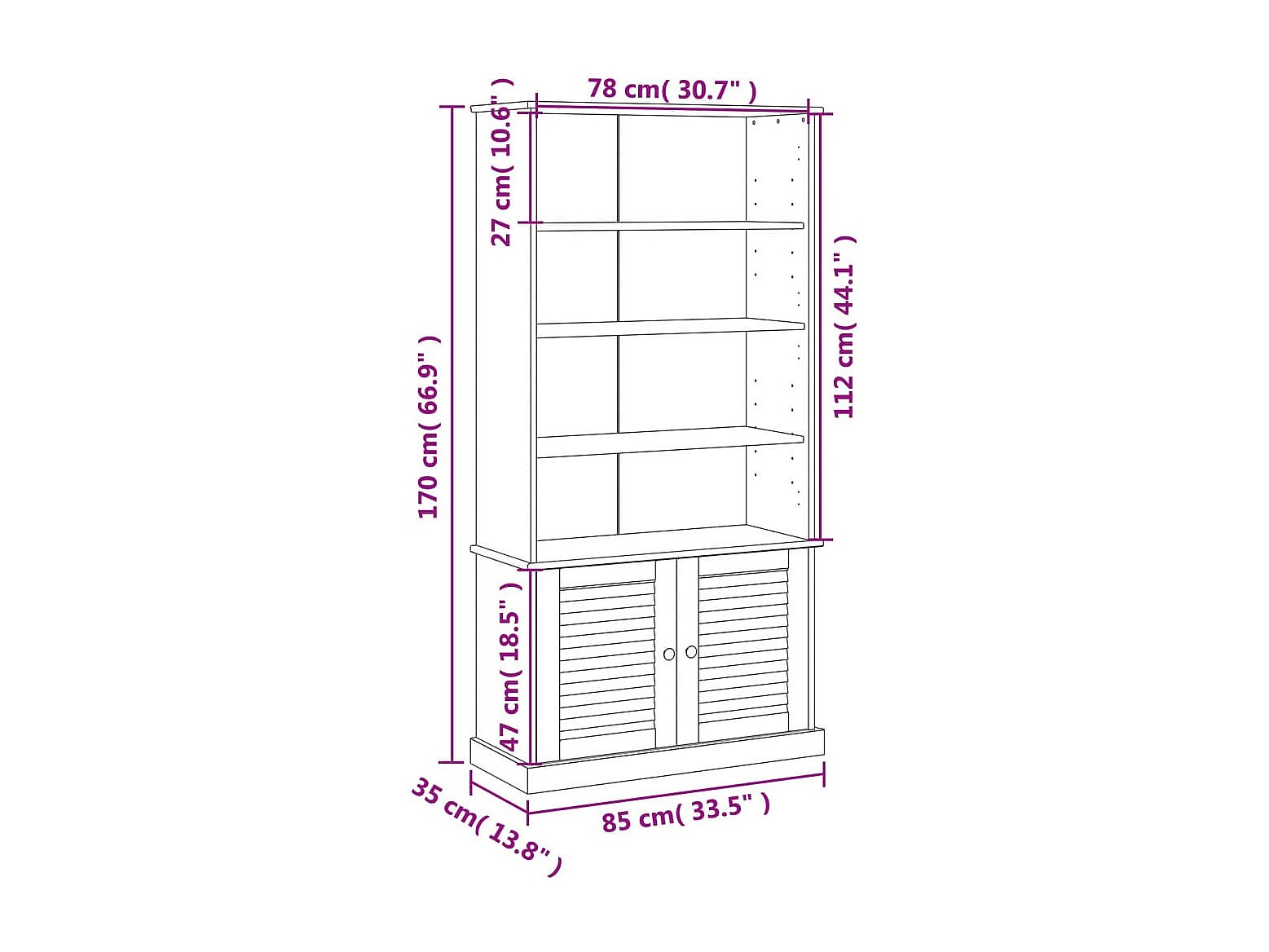 Larindor Bibliothèque VIGO gris 85x35x170 cm bois massif de pin