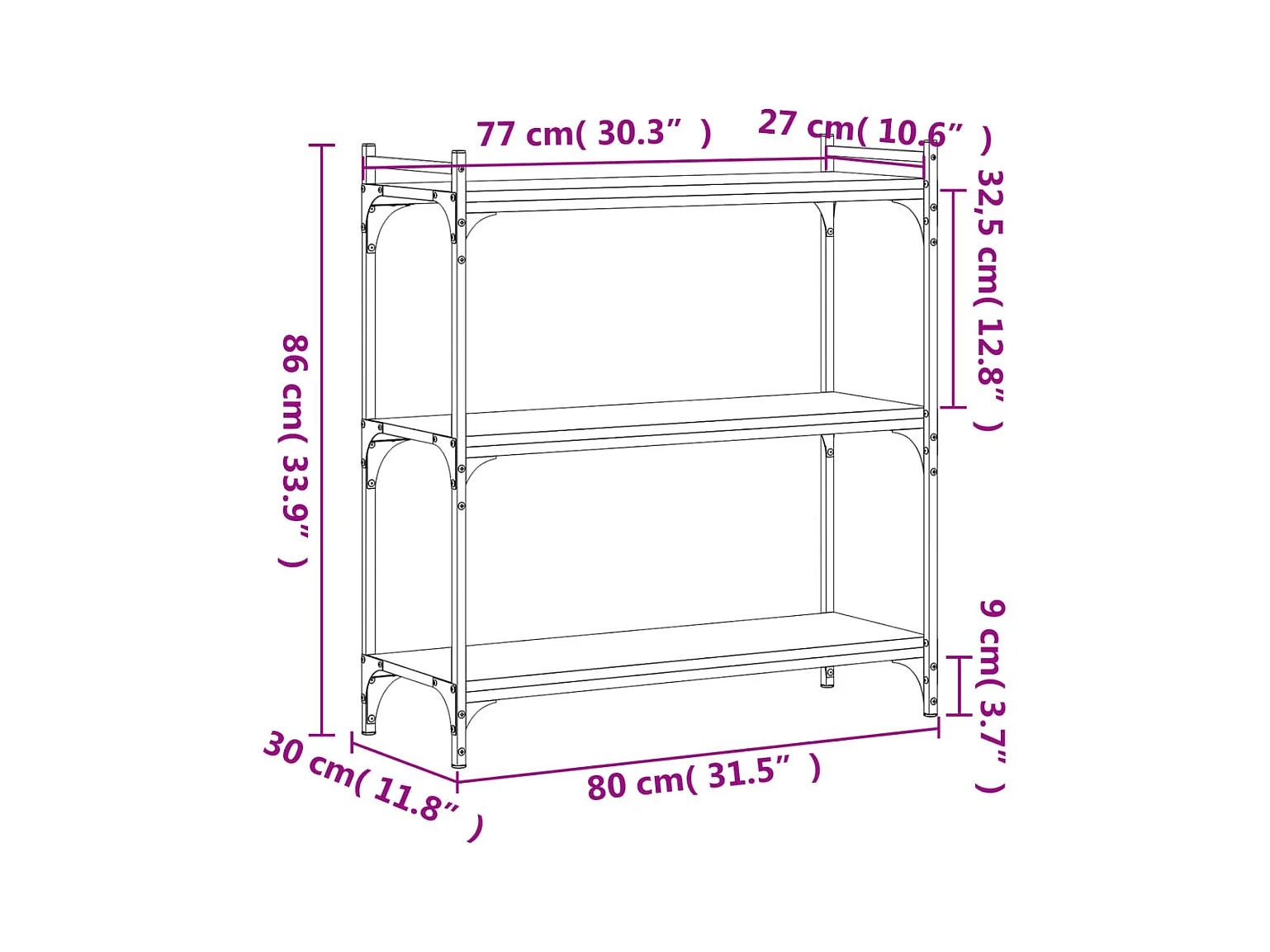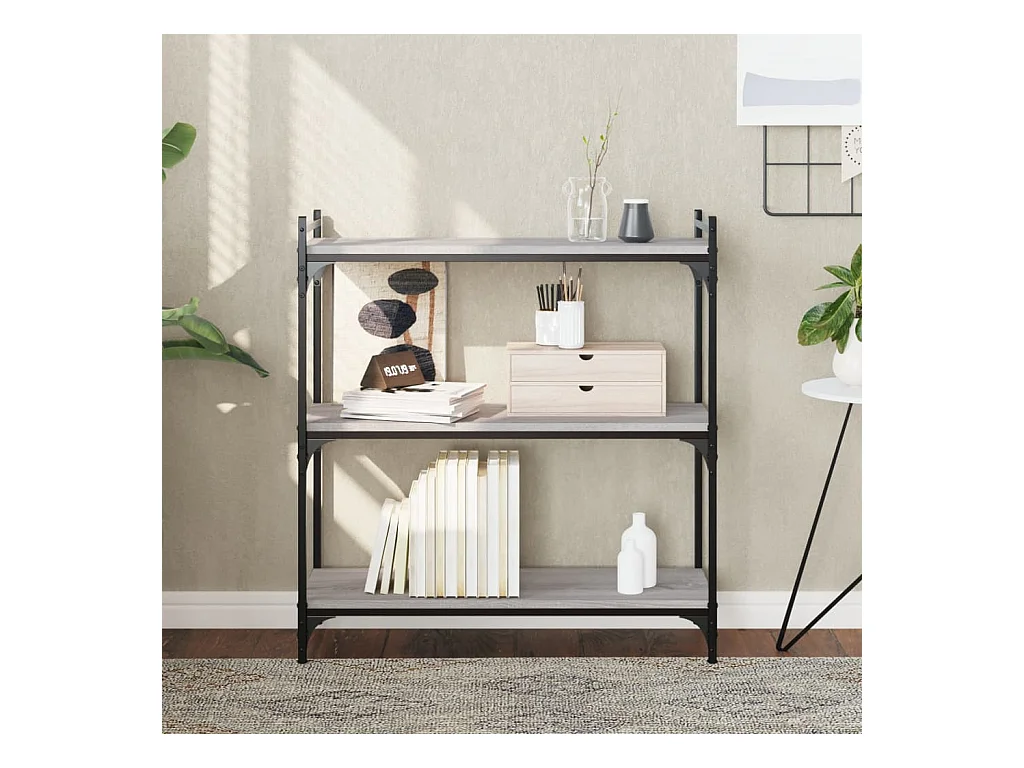 Lars Bibliothèque 3 niveaux sonoma gris 80x30x86cm bois d'ingénierie