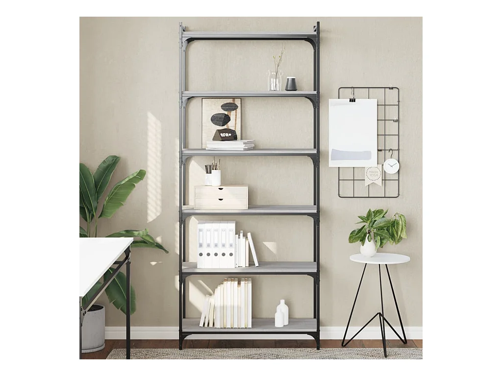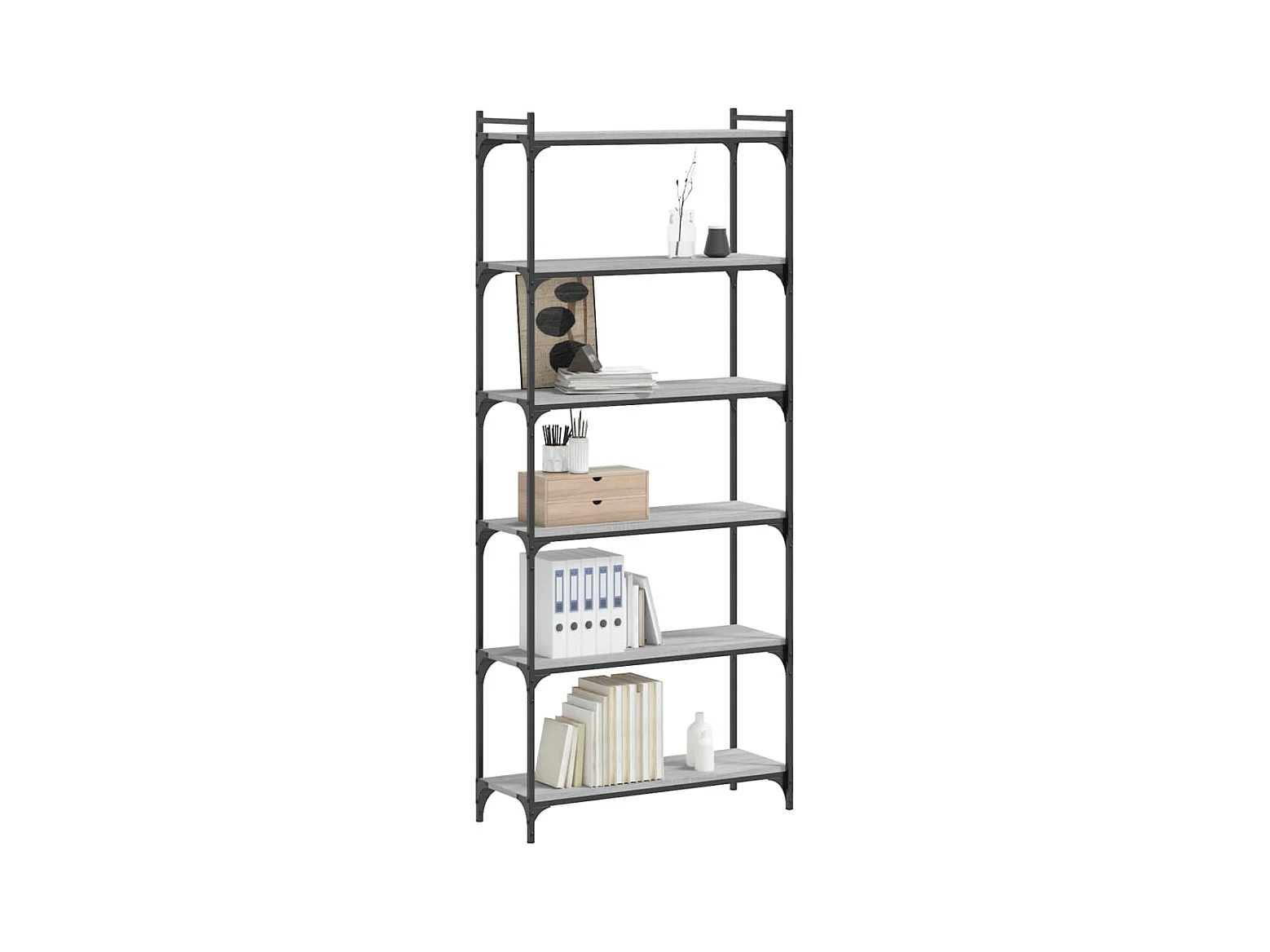 Lars Bibliothèque 6niveaux sonoma gris 80x30x188cm bois d'ingénierie