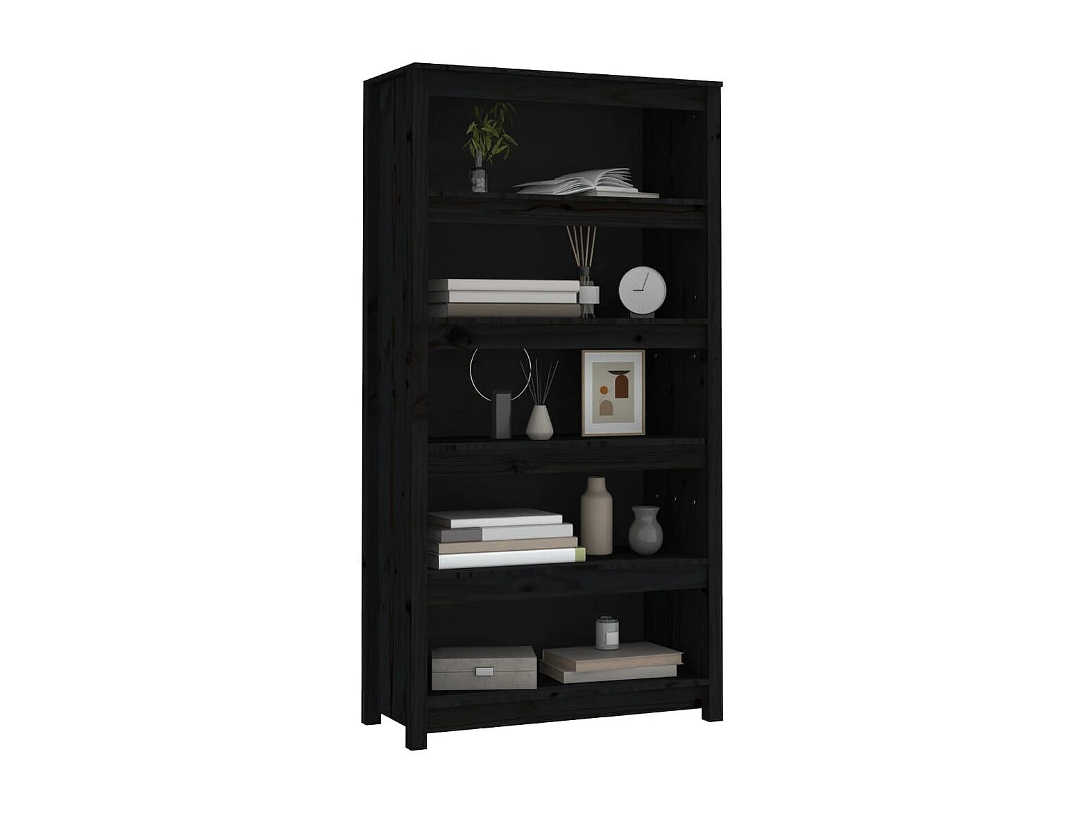 Laurens Bibliothèque Noir 80x35x154 cm Bois de pin massif