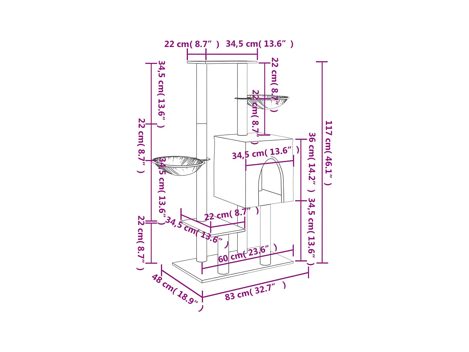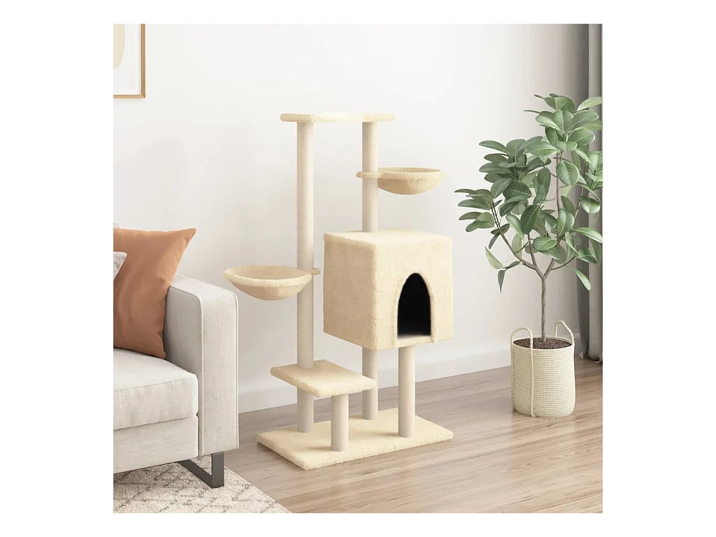 Arbre à chat avec griffoirs en sisal crème 118,5 cm