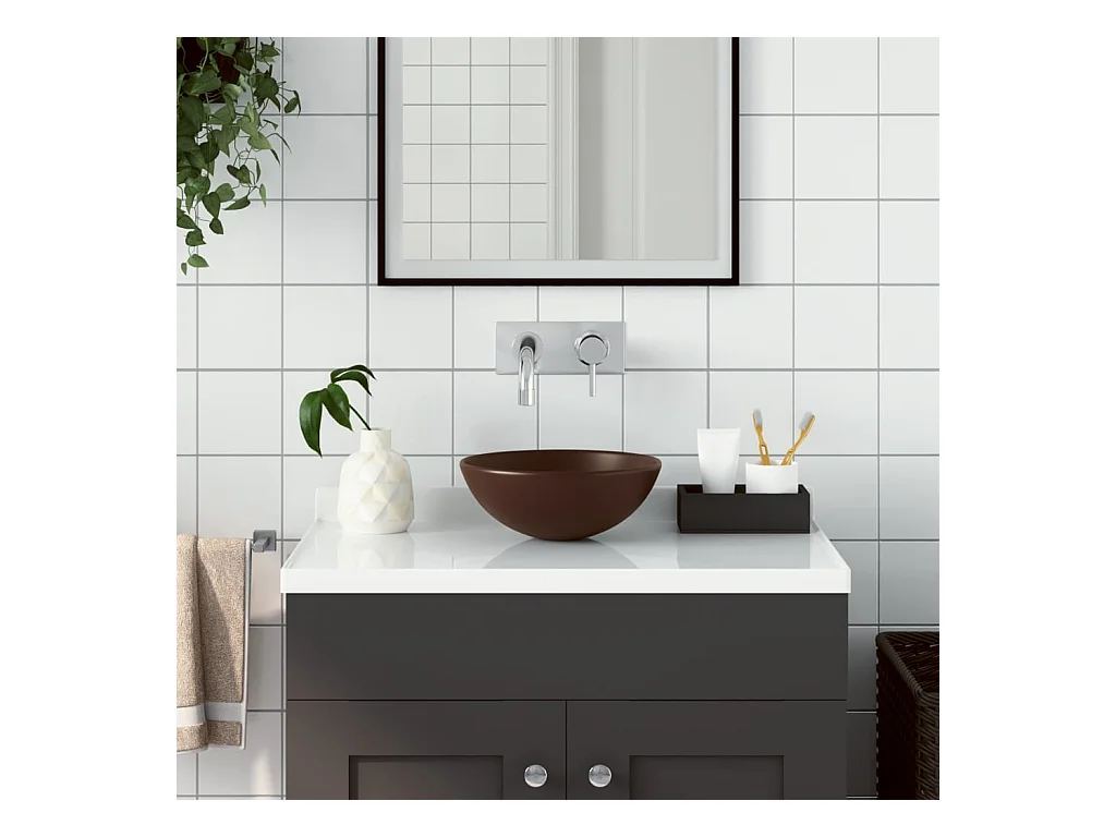 Lavabo rond salle de bain Marron foncé mat 32,5x14 cm Céramique