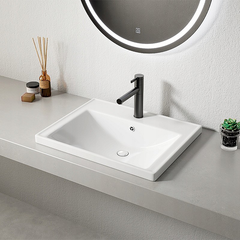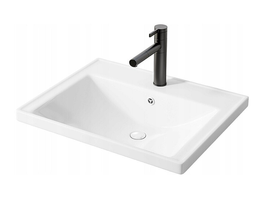 LAVABO EN CÉRAMIQUE BLANC POUR MEUBLE À ENCASTRER DANS UN PLAN DE TRAVAIL RECTANGULAIRE 52 x 41 CM