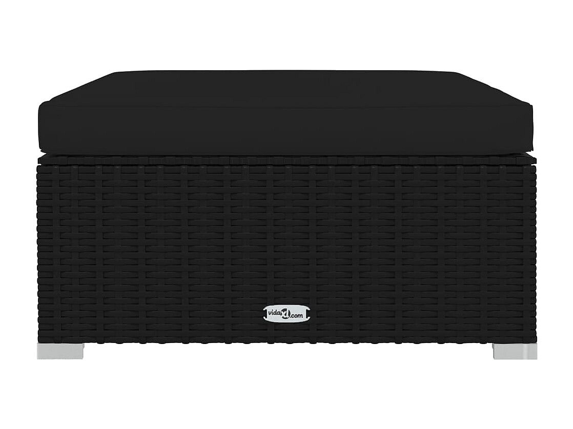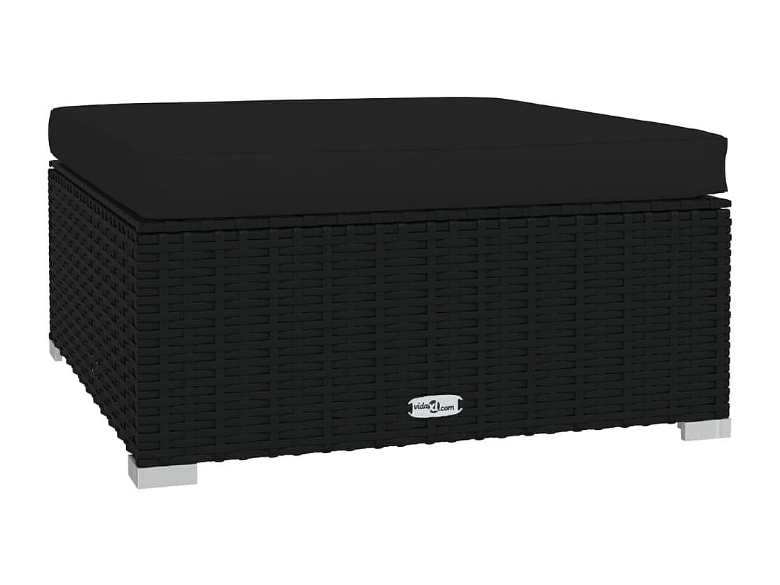 Layla Hope Repose-pied de jardin coussin Noir 70x70x30 cm Résine tressée