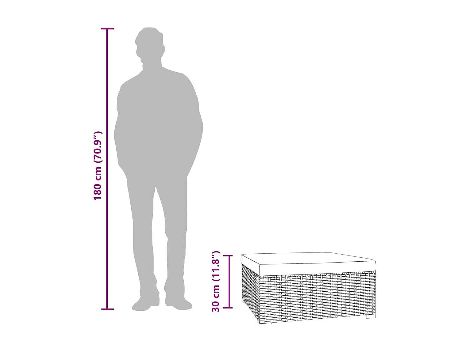 • Dimensions du repose-pied : 70 x 70 x 30 cm (L x I x H)
