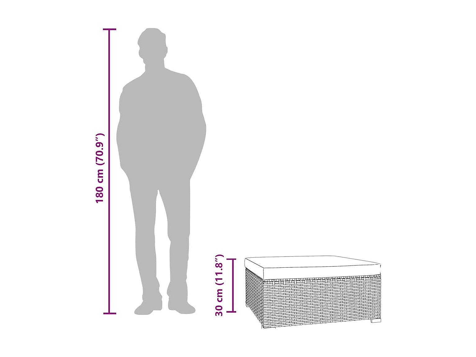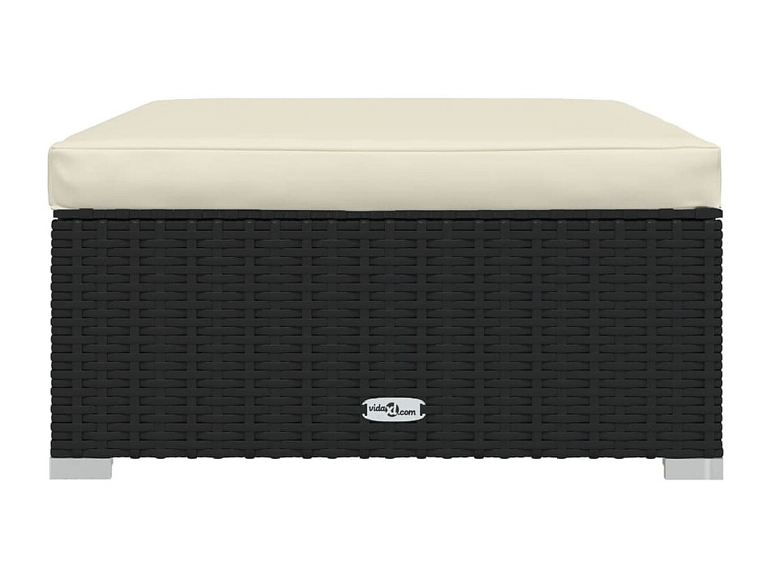 Layla Hope Repose-pied de jardin et coussin Noir 70x70x30cm Résine tressée