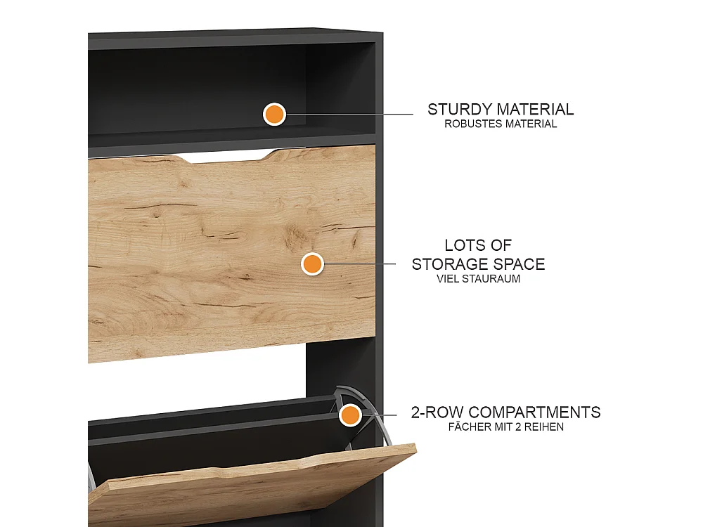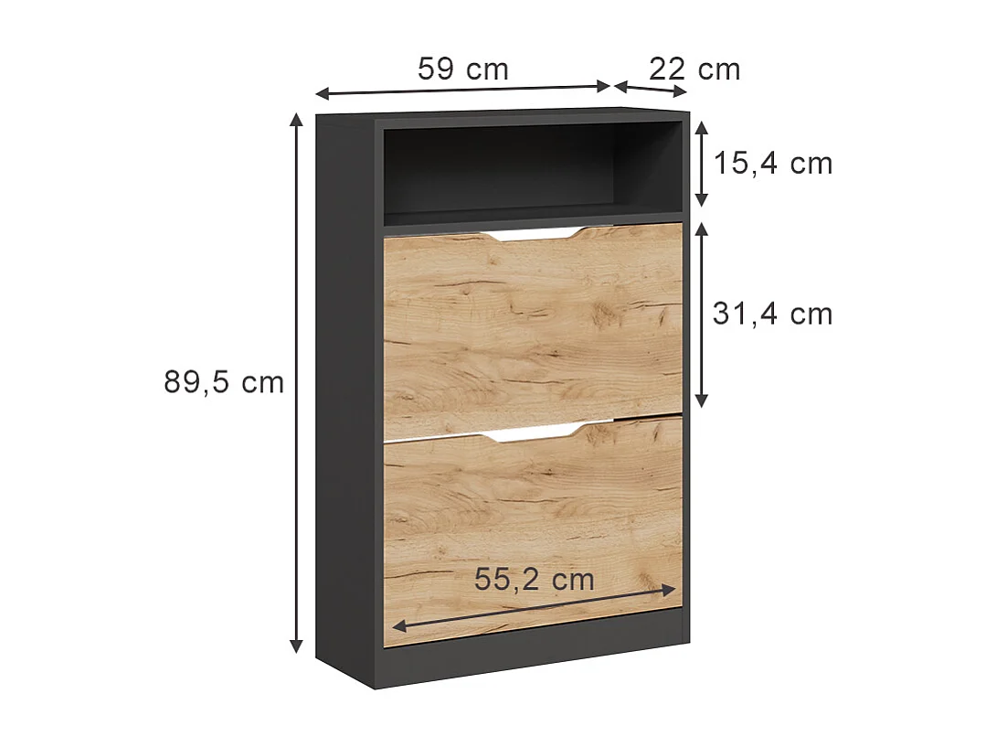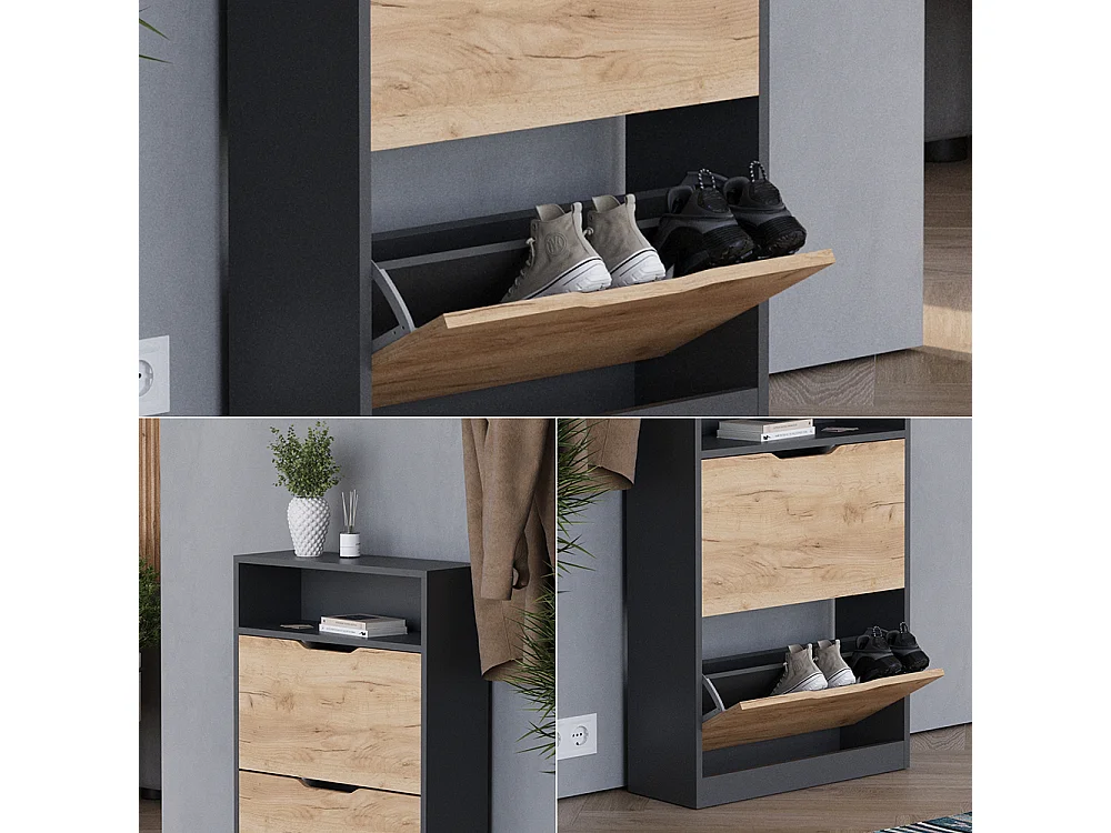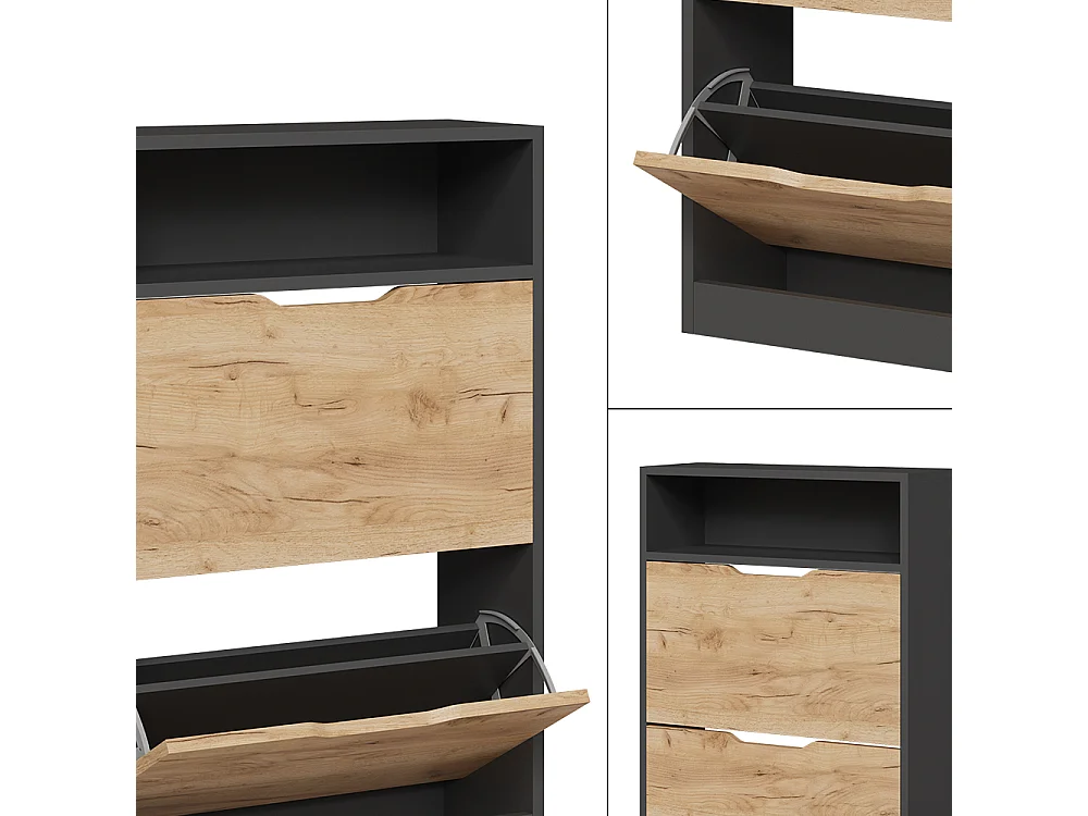 Le basculeur à chaussures anthracite/chêne doré 59x22x89.5 luca