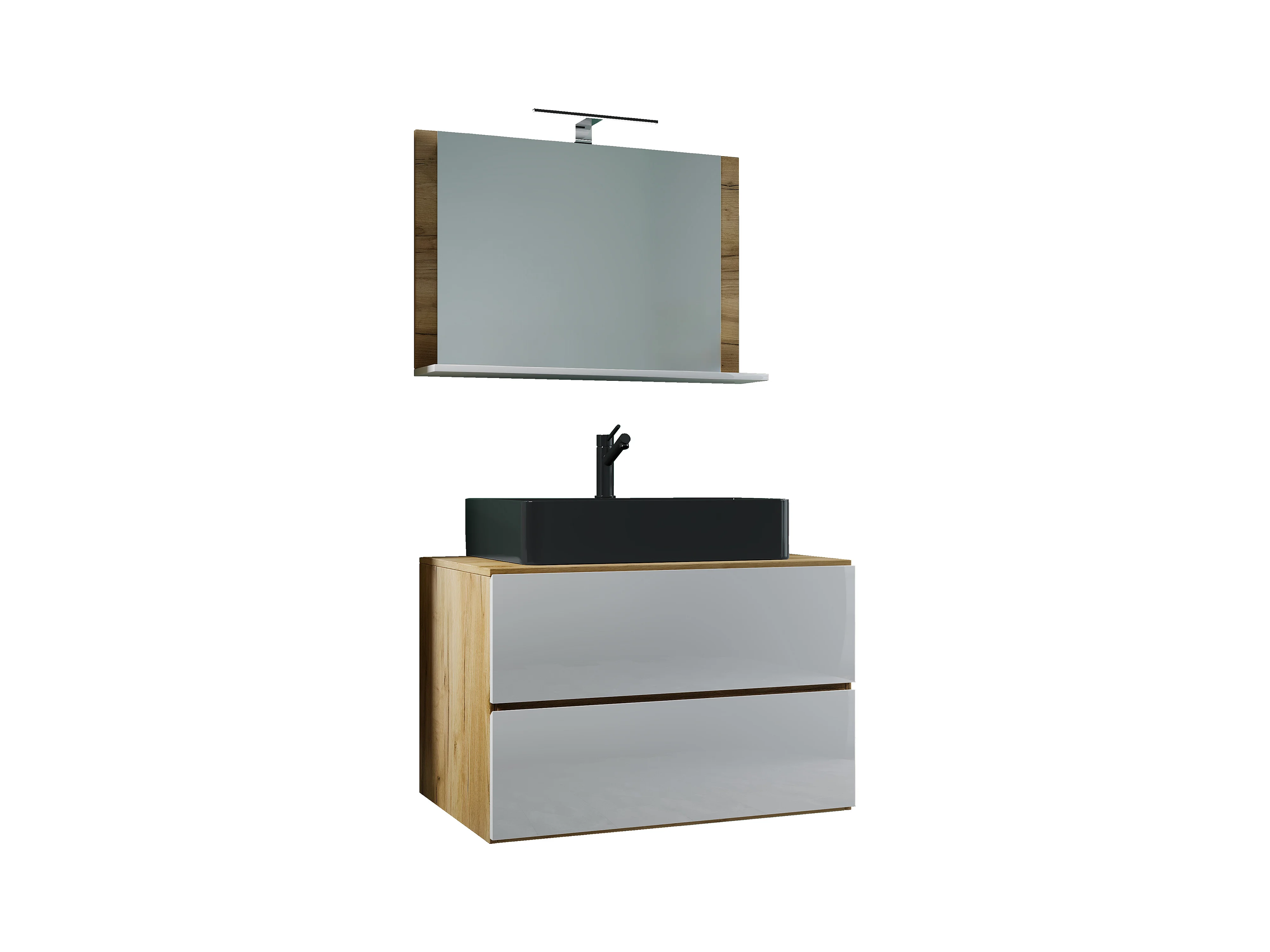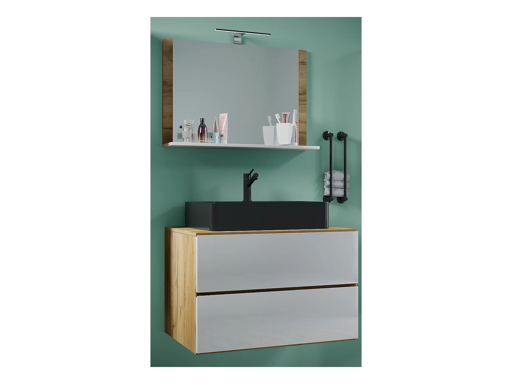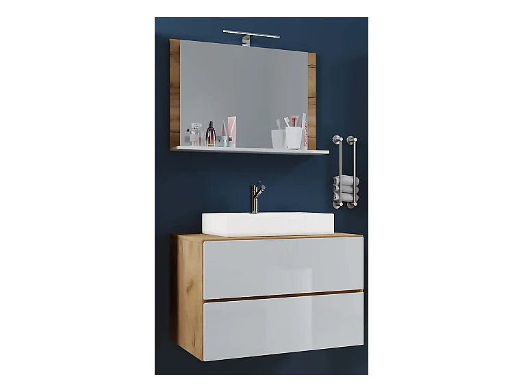 Bathroom furniture washbasin Lendas White / Honey oak H. 52 x W. 80 x D. 52 cm