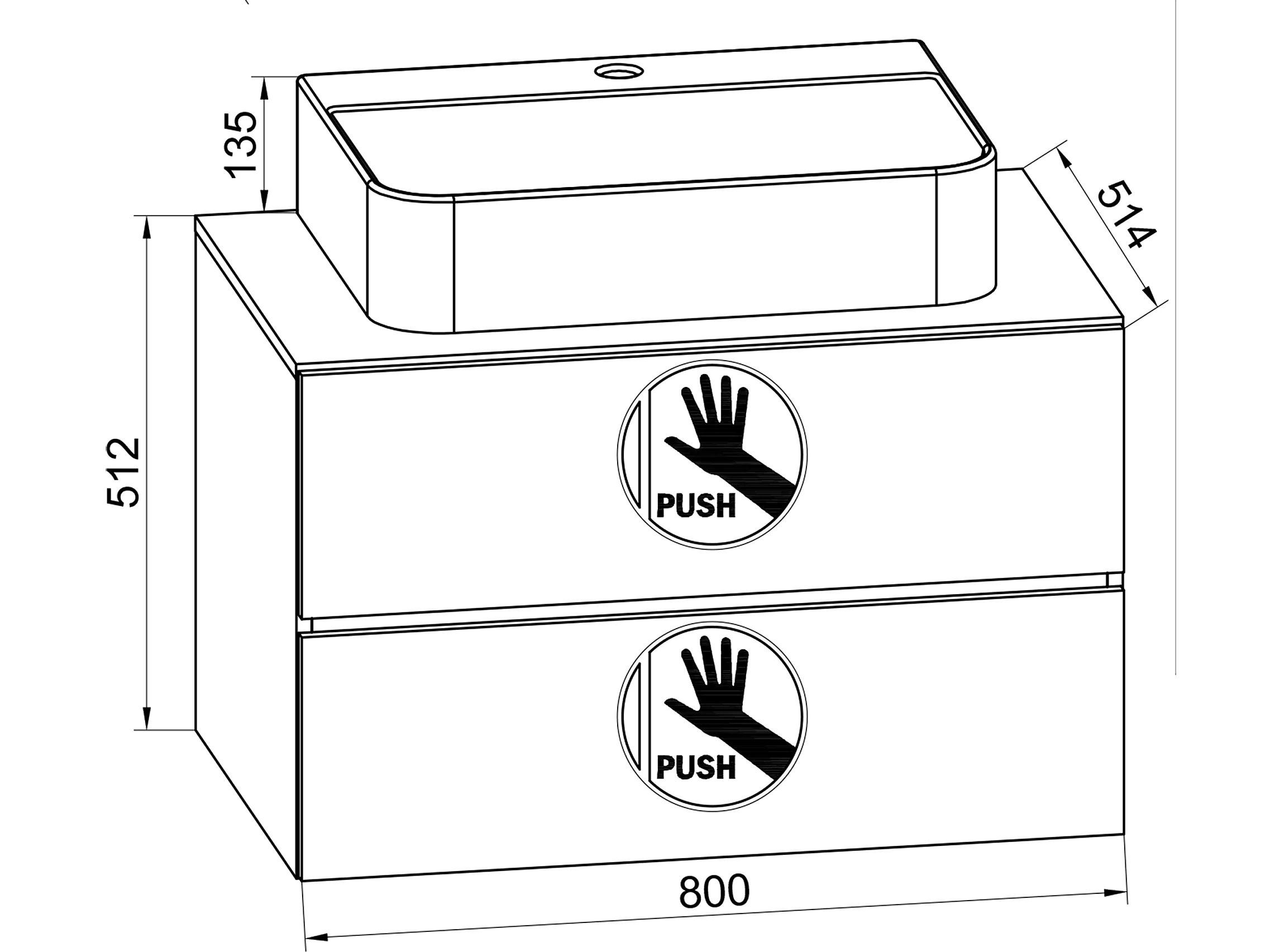 Bathroom furniture washbasin Lendas Honey oak H. 52 x W. 80 x D. 52 cm