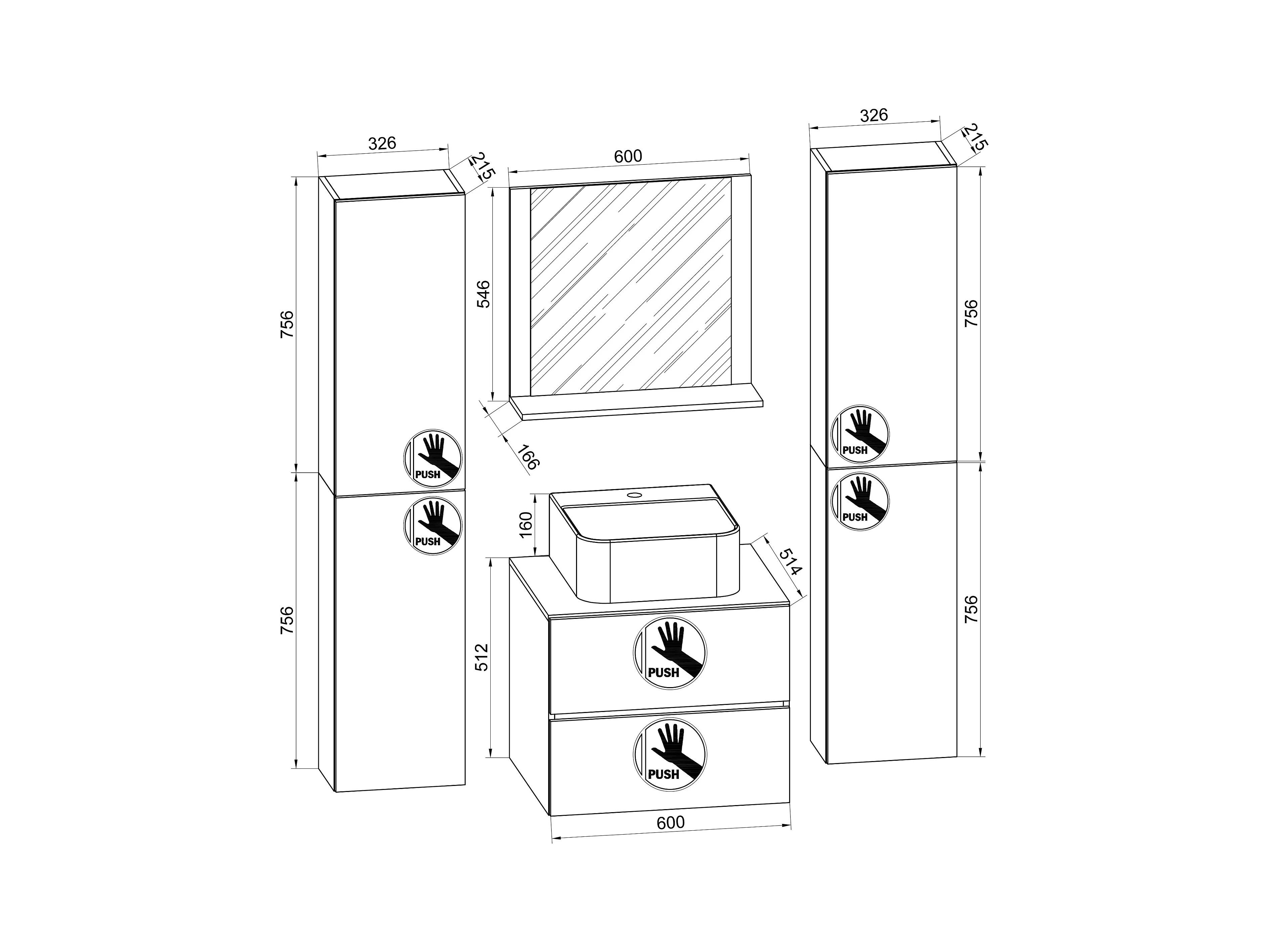 Bathroom furniture washbasin Badinos White H. 143 x W. 60 x D. 46 cm