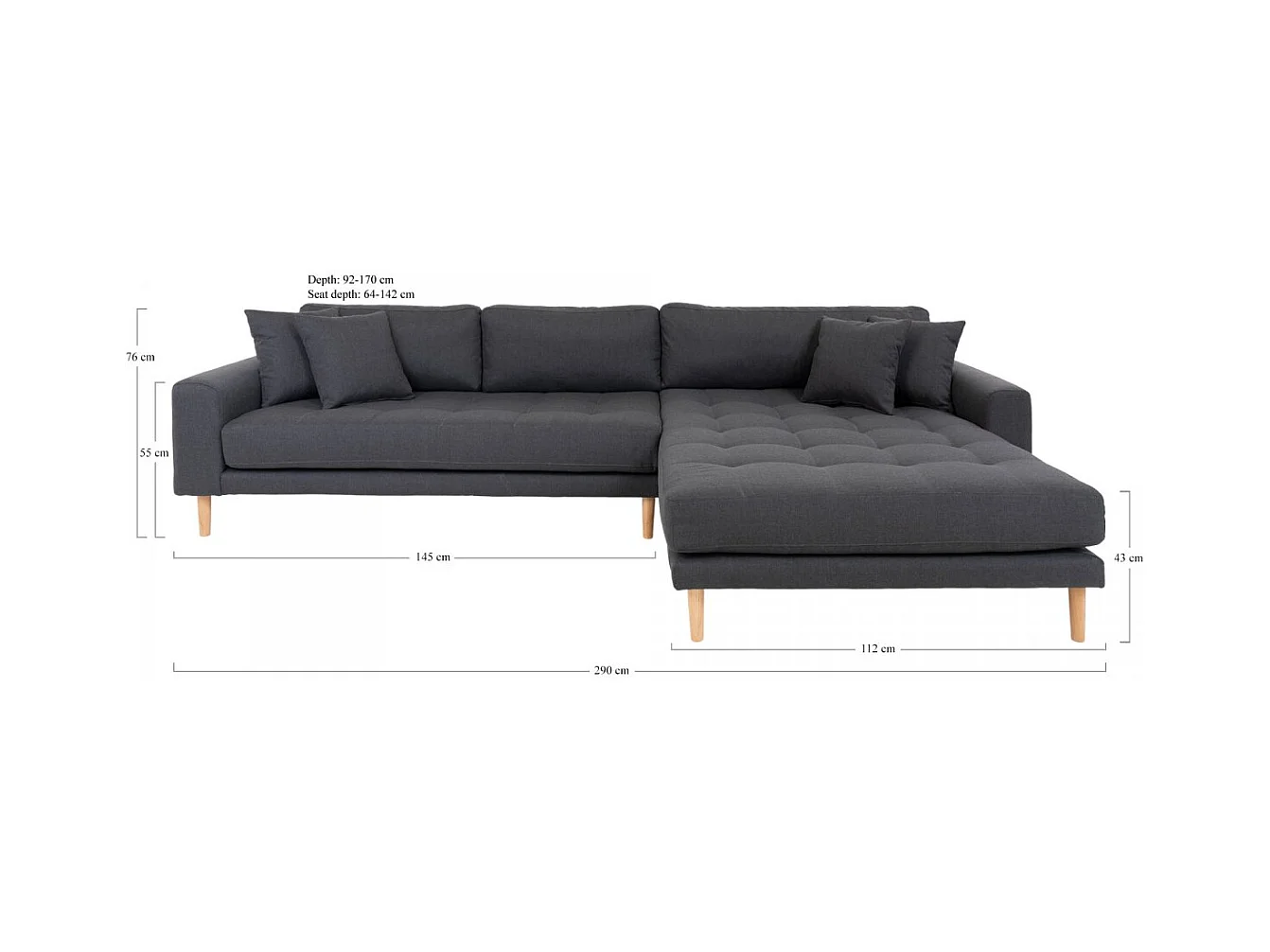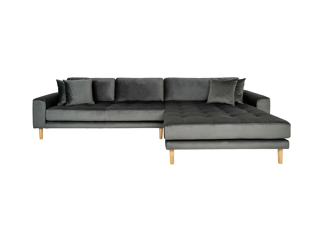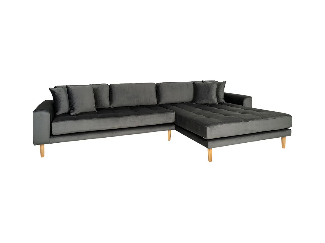 Lido - Canapé d'angle droit en velours L290cm : Couleur - Gris