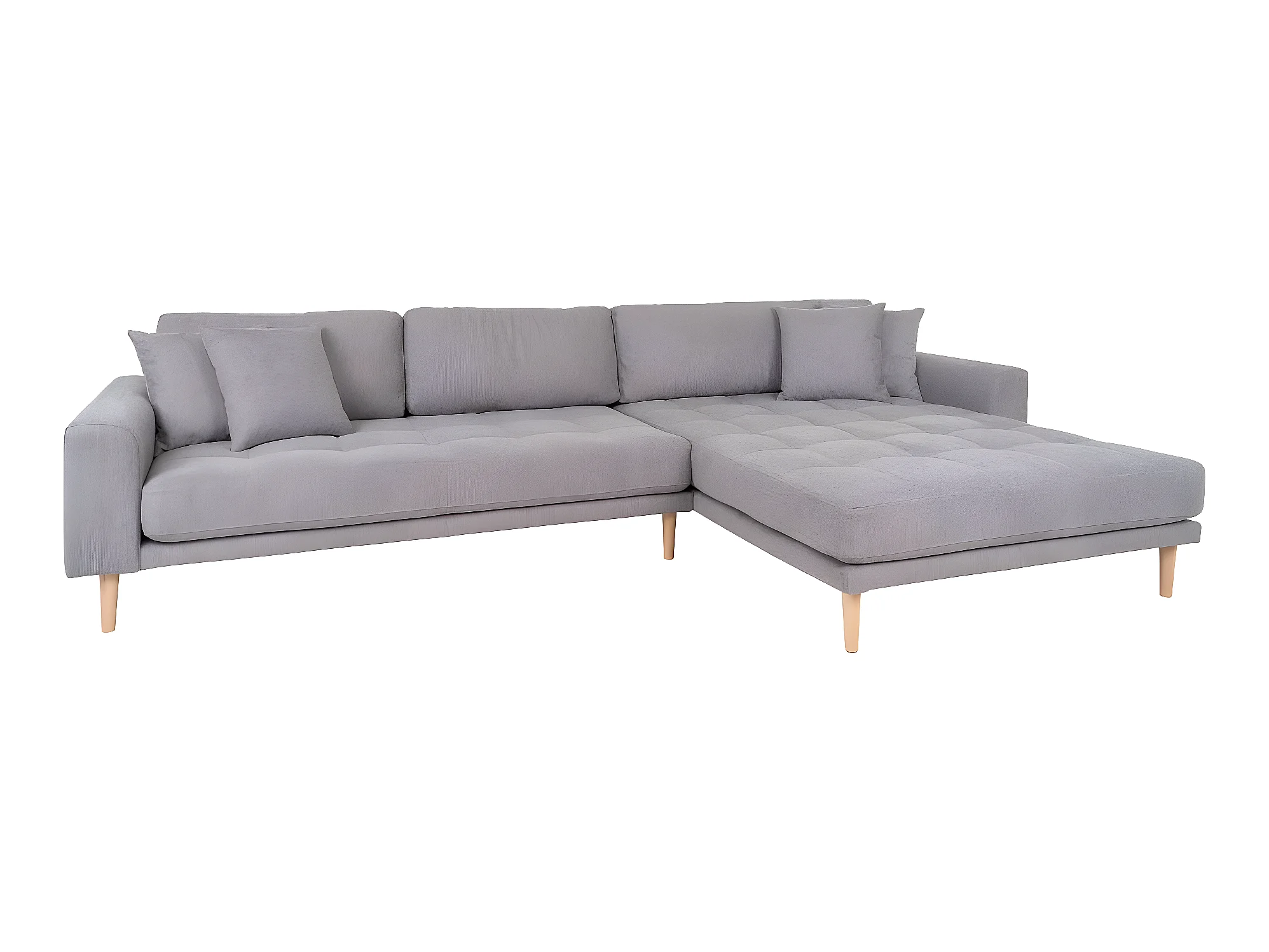 Lido canapé , loungesofa tourné vers la droite avec 4 coussins gris clair.
