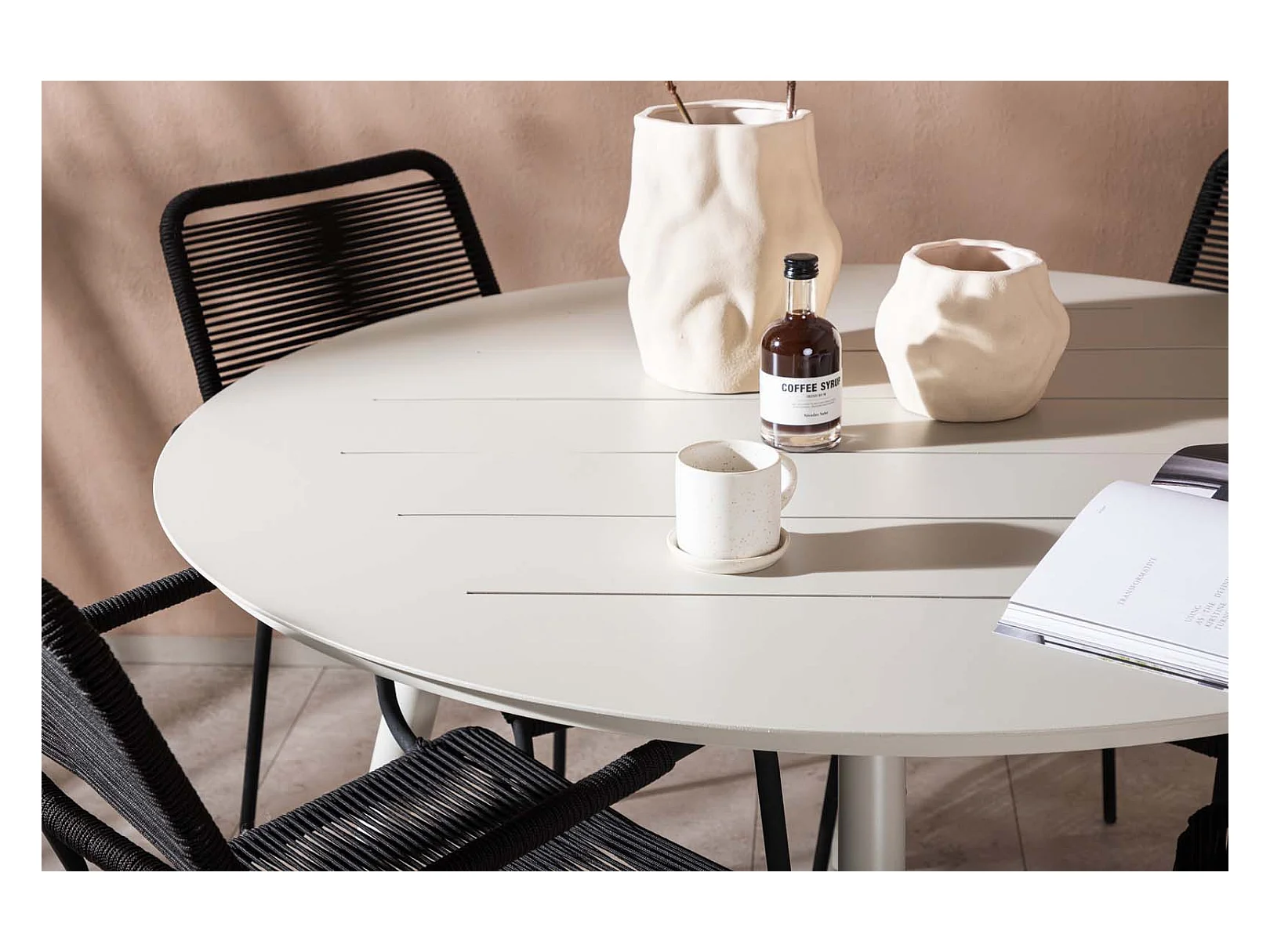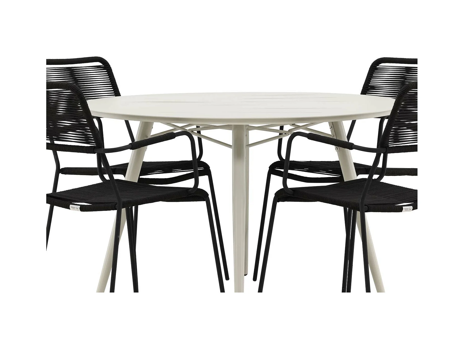 Lina set de jardin table Ø120cm beige, 4 chaises Lindos noir.