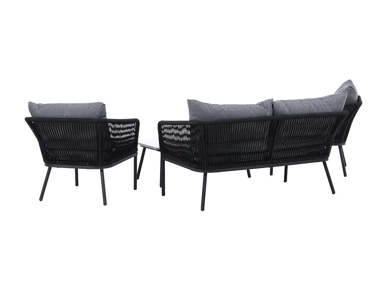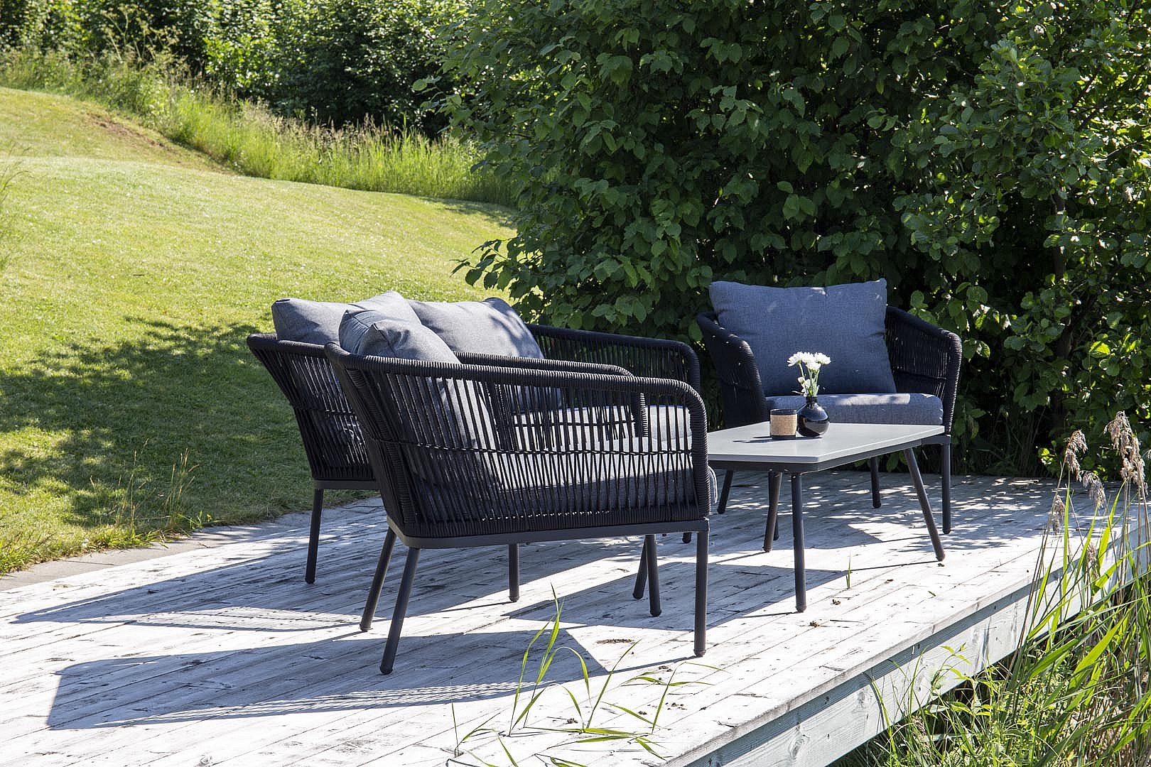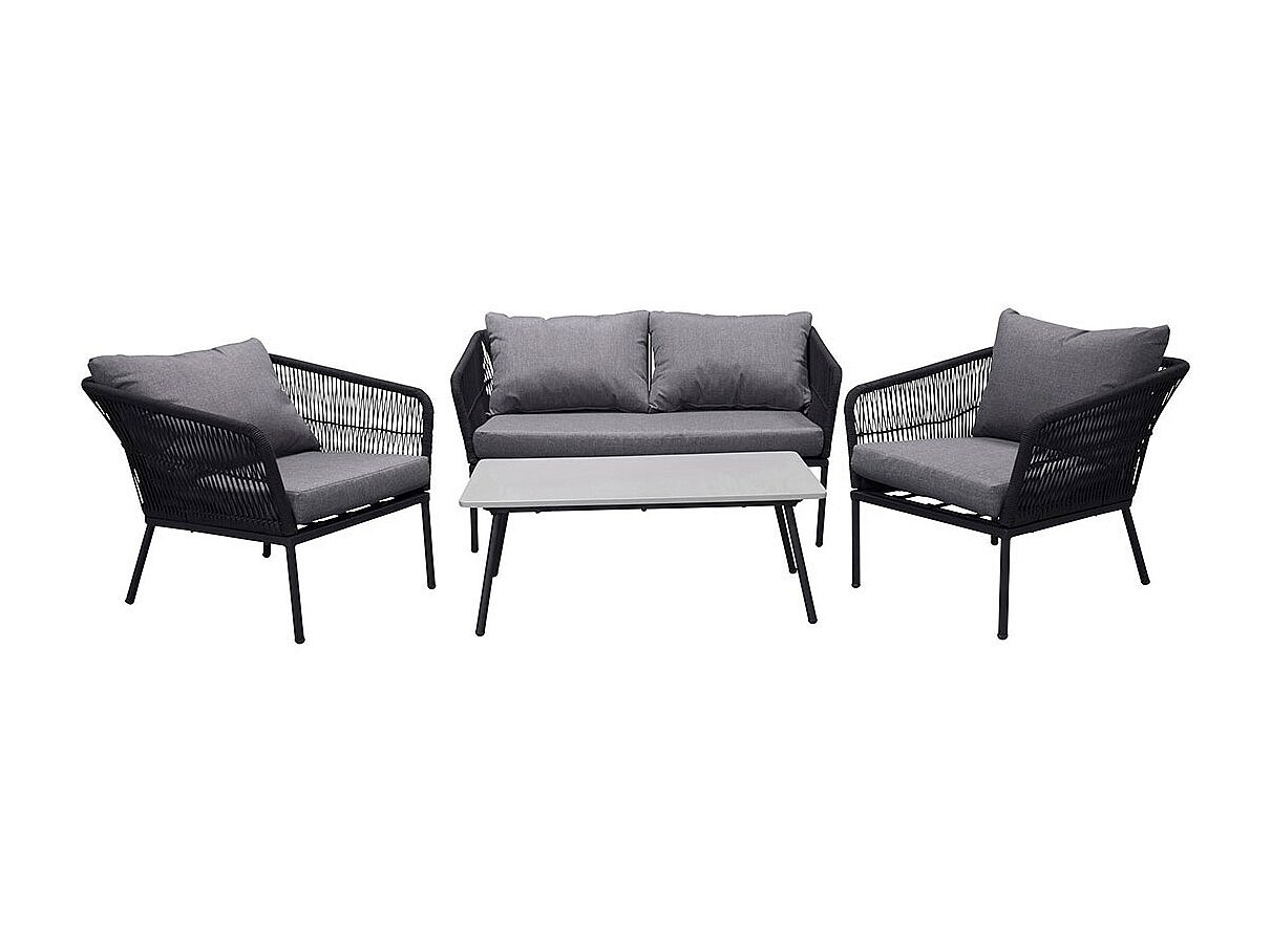 Salon de Jardin "Lindos" 134cm Noir & Gris