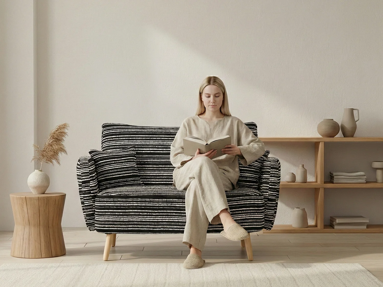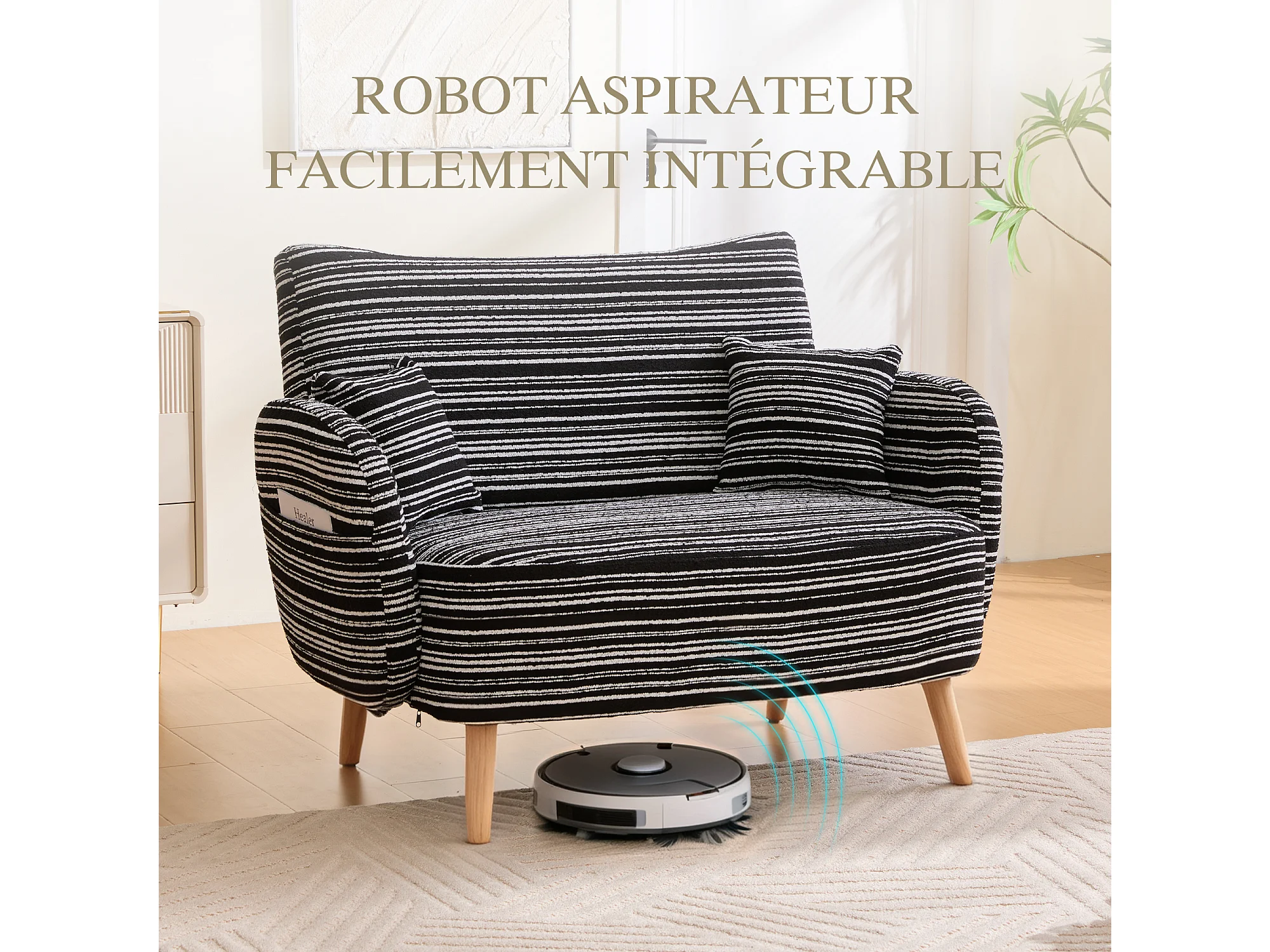 Linea 2.0 - Petit Canapé 2 Places 121cm Large - Extrêmement Robuste 250kg, Tissu Bouclé avec Poches - Parfait pour les Petits Espaces et Toutes les Pièces
