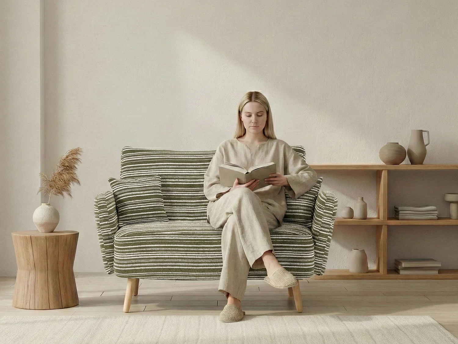 Linea 2.0 - Petit Canapé 2 Places 121cm Large - Extrêmement Robuste 250kg, Tissu Bouclé avec Poches - Parfait pour les Petits Espaces et Toutes les Pièces
