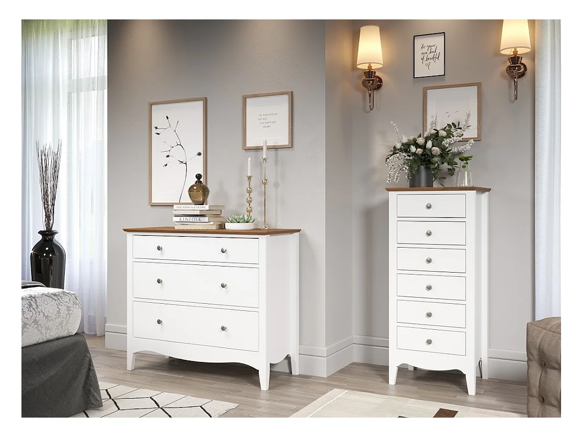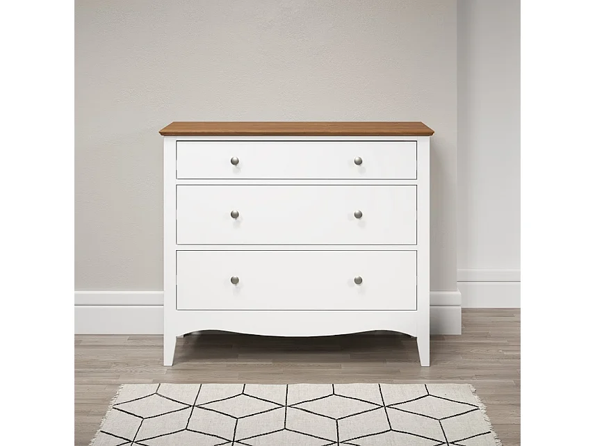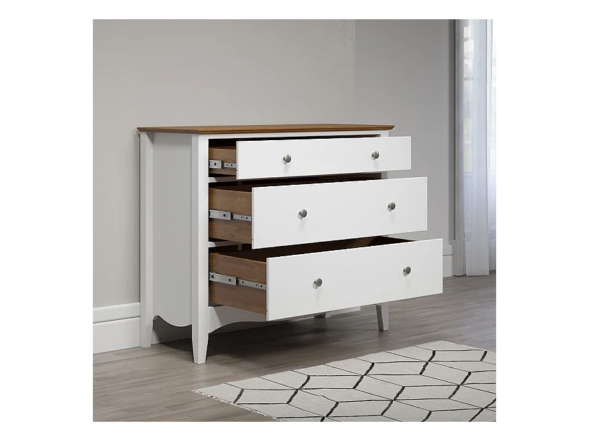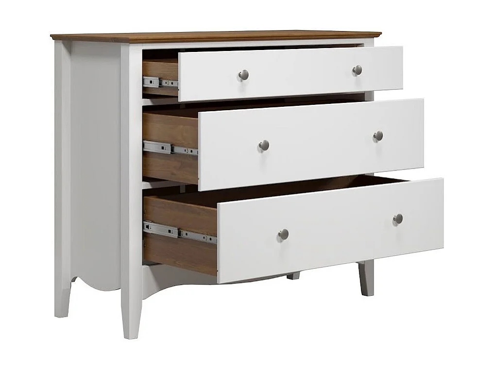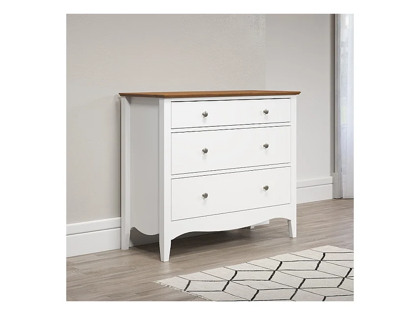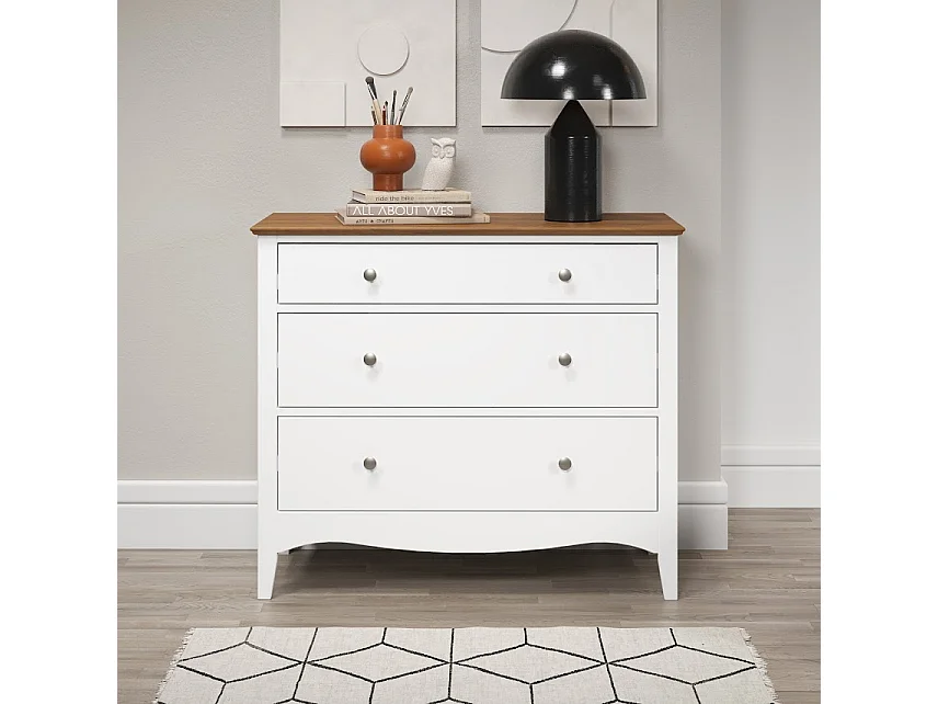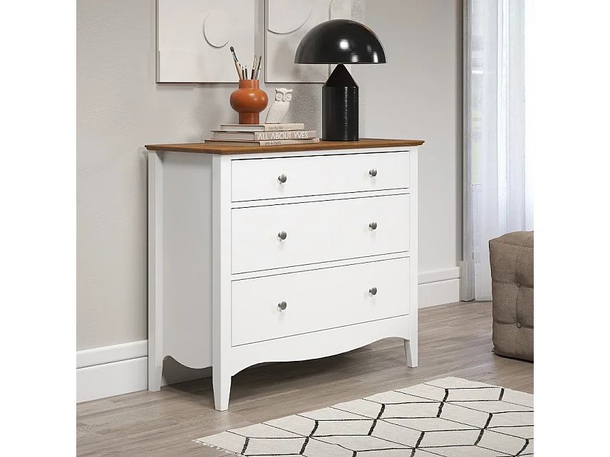 Meuble de rangement 3 tiroirs bois massif blanc et naturel Elisa