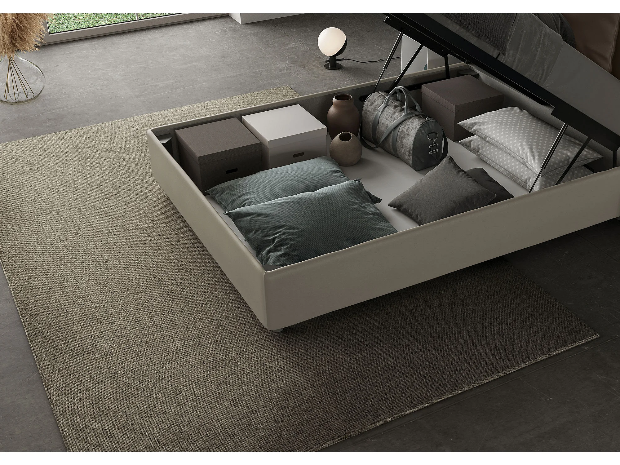 Lit 1 place et demi coffre rembourré 120x200 similicuir cappuccino Annalisa Large