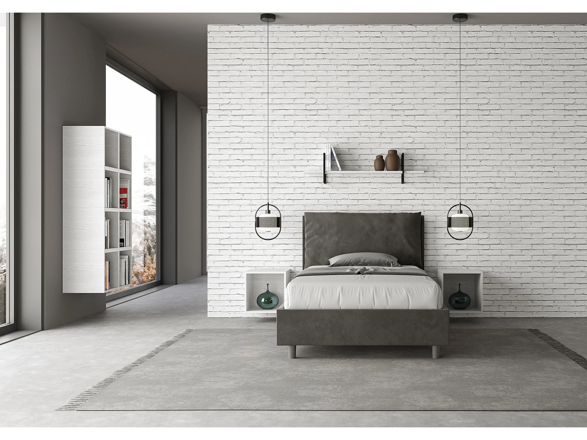 Lit 1 place et demi sans sommier rembourré 120x190 microfibre gris Appia Large