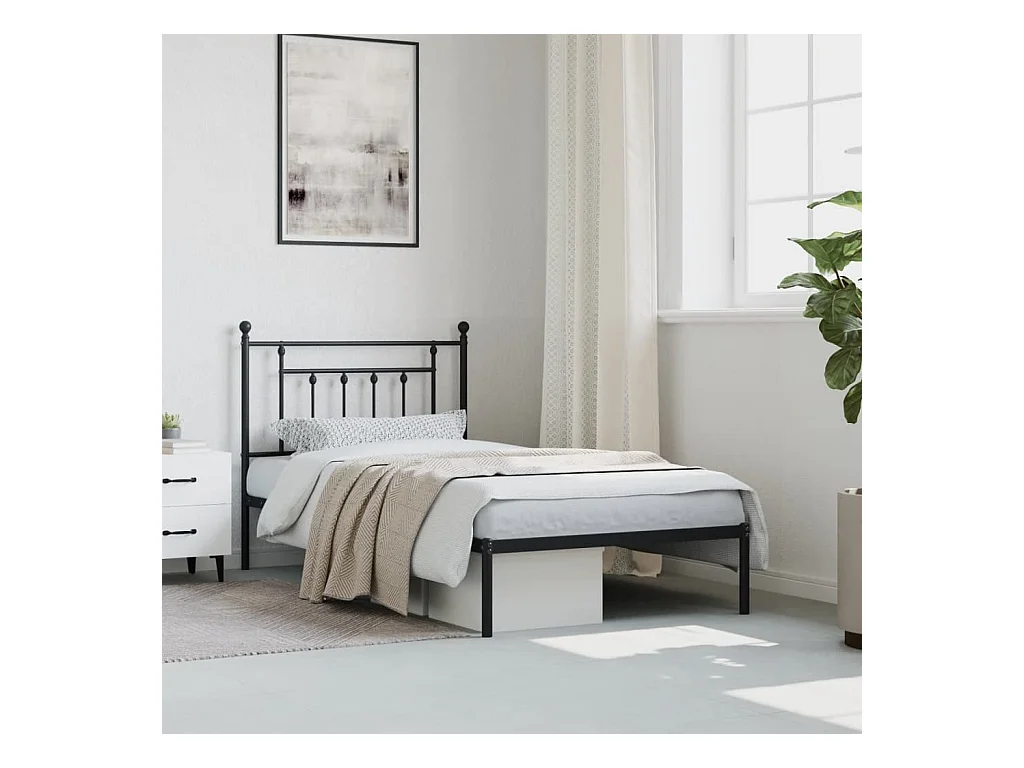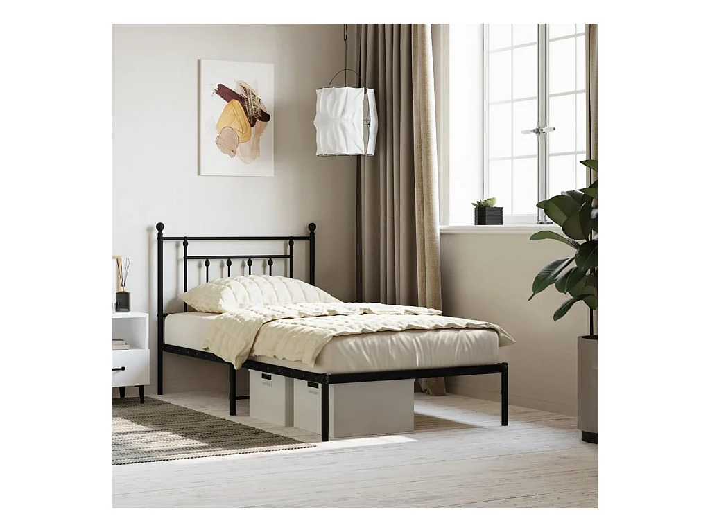 Lit-100x190 cm métal avec tête de lit noir EGGB86729
