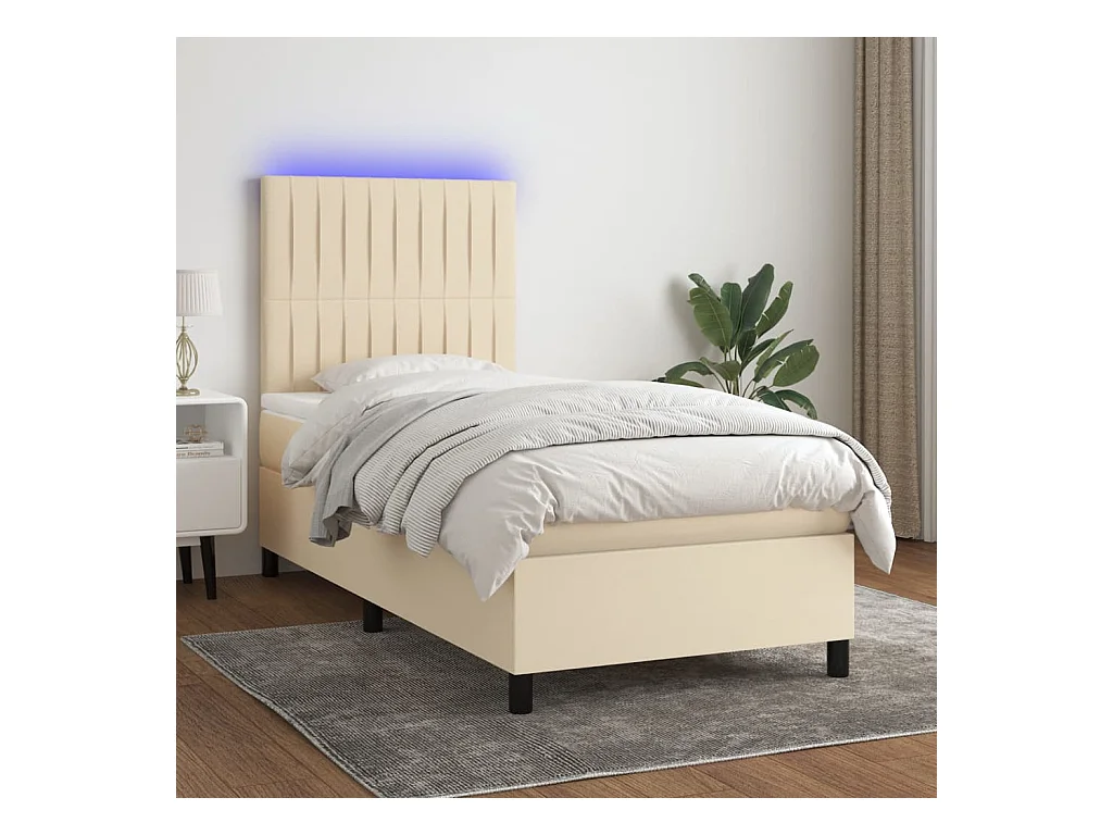 Ensemble complet boxspring - 100x200 cm + sommier à lattes de lit + matelas + LED Crème Tissu SRGW89199
