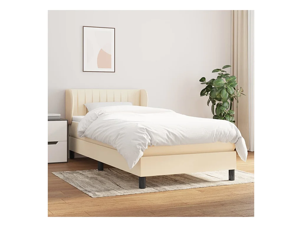 Ensemble complet boxspring - 100x200 cm + sommier tapissier + matelas Crème Tissu SRGW93984