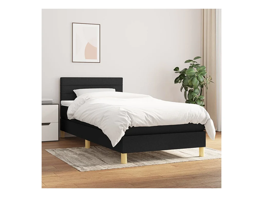 Ensemble complet boxspring - 100x200 cm + sommier tapissier + matelas Noir Tissu SRGW80369