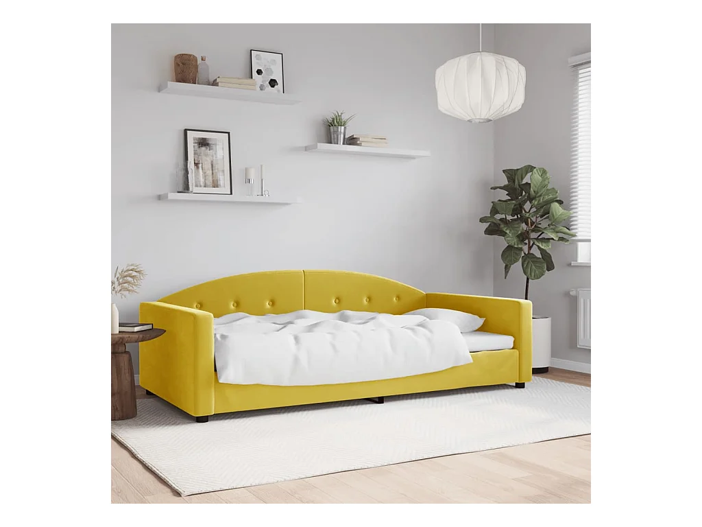 Lit de jour avec matelas jaune 100x200 cm velours