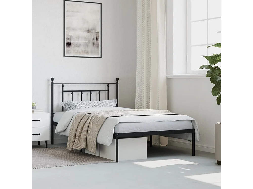 Lit simple métal + tête de lit/pied de lit noir 100x200 cm FR12064