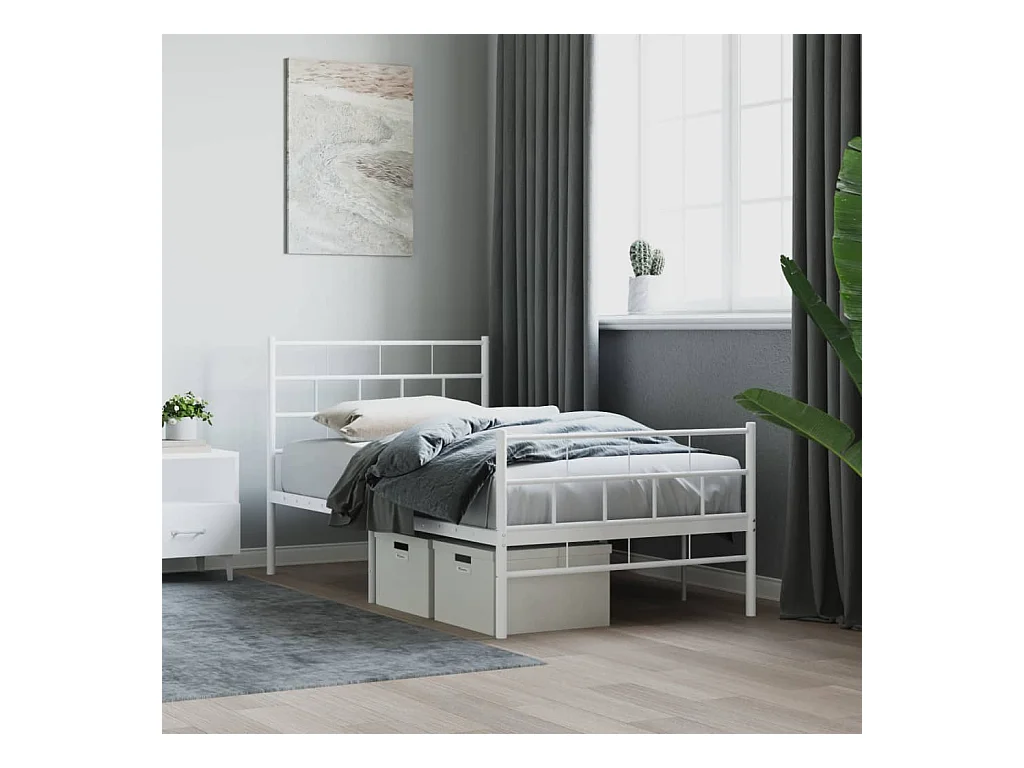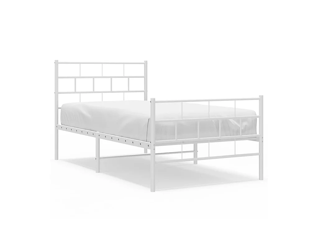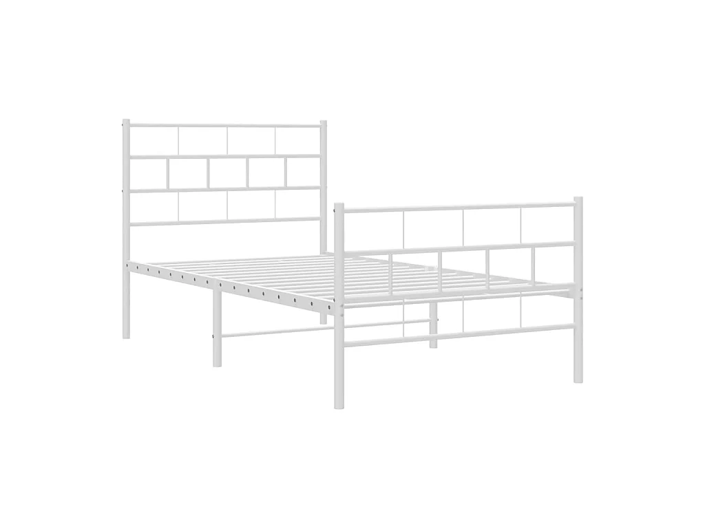 Lit simple métal + tête de lit/pied de lit blanc 100x200cm FR36276