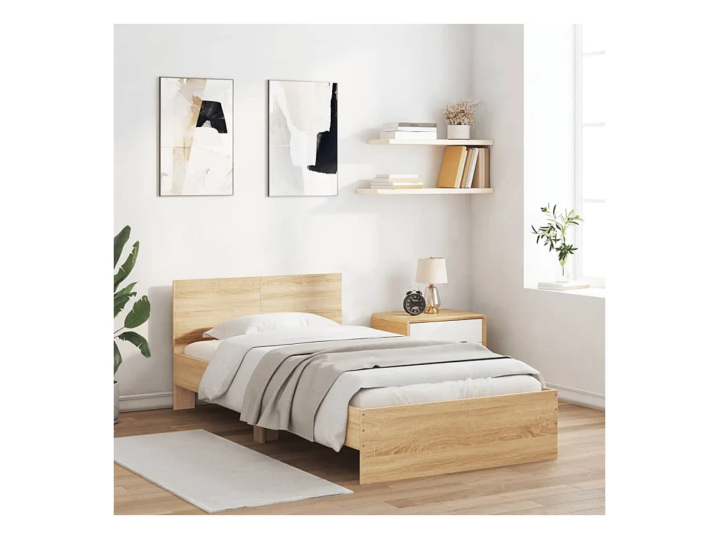 Lit-100x200 cm + tête de lit chêne sonoma HOQW49001