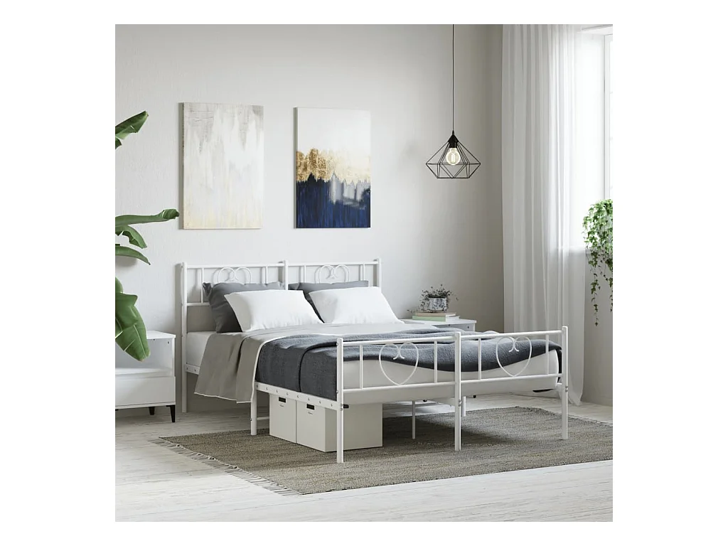 Lit double métal + tête de lit/pied de lit blanc 120x190cm FR45215