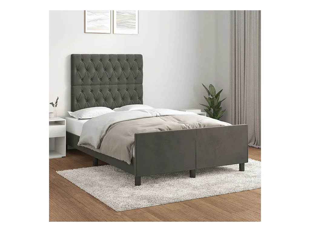 Lit-120x200 cm avec tête de lit Gris foncé Velours EGGB31414