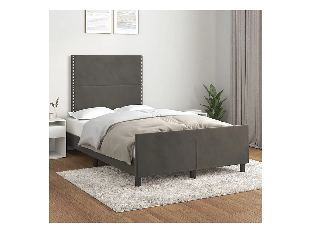 Lit-120x200 cm avec tête de lit Gris foncé Velours EGGB38477