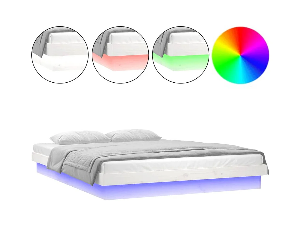 Lit-135x190 cm à LED blanc double bois massif HOQW24942