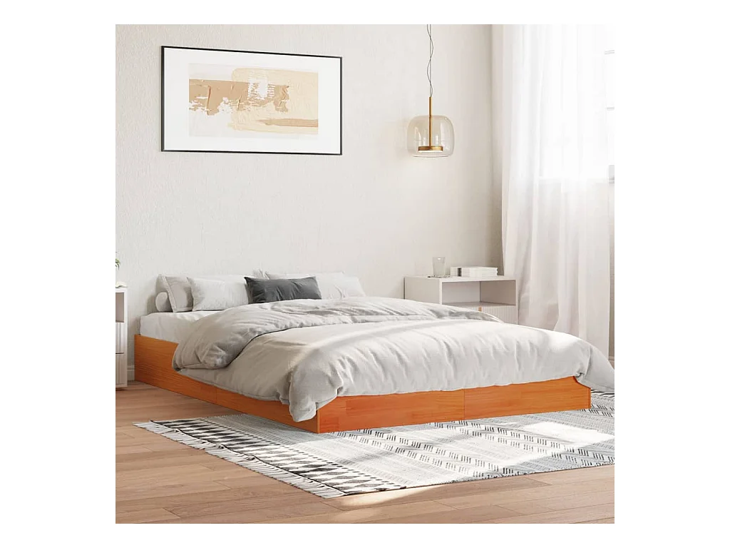 Cadre de lit sans matelas cire marron 140x190cm bois pin massif