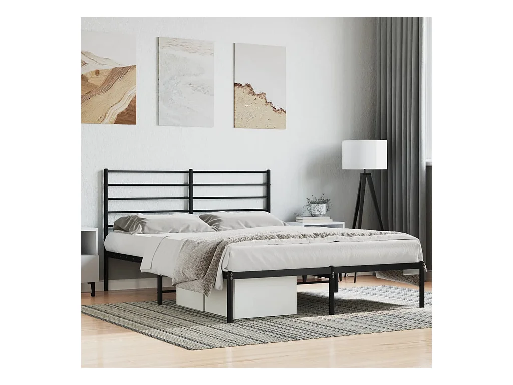 Lit-140x190 cm métal avec tête de lit noir EGGB87074