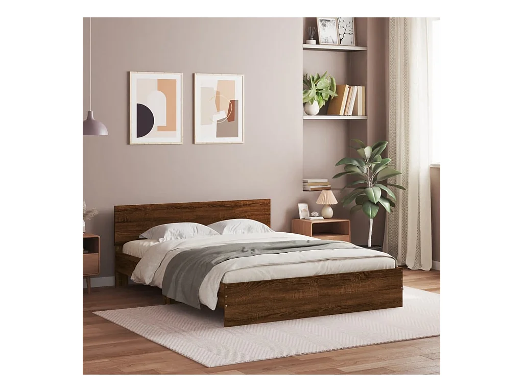 Lit-140x190 cm + tête de lit chêne marron HOQW21855